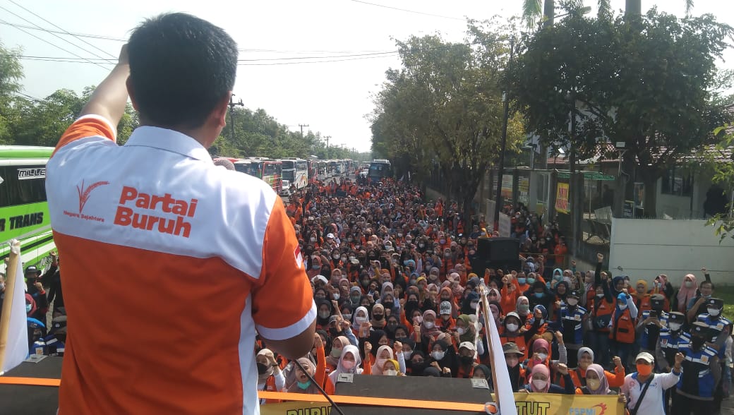 “Lahirnya Omnibuslaw telah terbukti menyayat kaum buruh, banyak aturan yang berpihak kepada oligarki dan merugikan kaum buruh dan rakyat”.