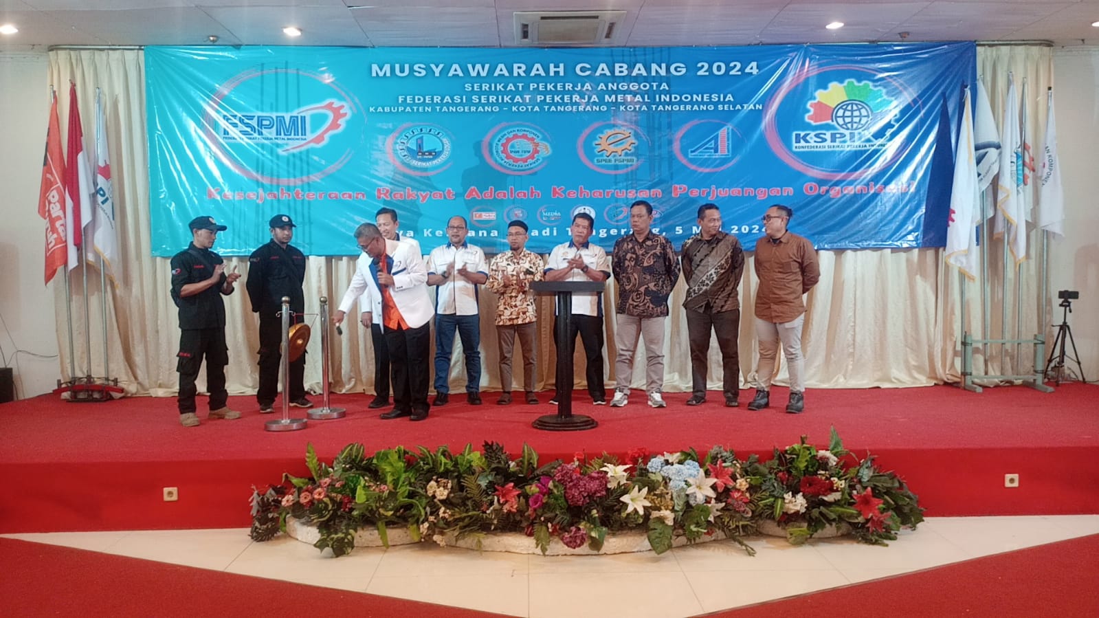 Sebelum meninggalkan tempat setelah sambutan, Presiden FSPMI secara simbolik membuka jalannya acara Muscab ke-VI FSPMI Tangerang Raya.