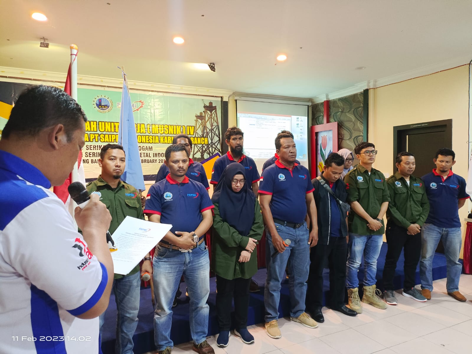 Pelantikan dan pengukuhan pengurus PUK SPL FSPMI PT.Saipem Indonesia Karimun Branch secara khidmat dipimpin langsung oleh sekretaris umum PP SPL FSPMI, Supriyanto.