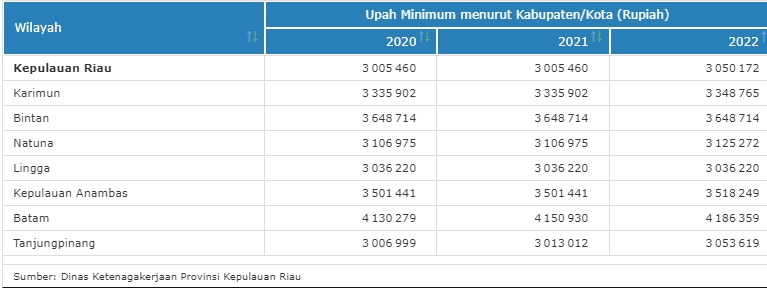 Pengajar di Fakultas Ekonomi Universitas Maritim Raja Ali Haji (UMRAH), Winata Wira, mengatakan, kenaikan UMP Kepri 2022 sebesar 1,42 persen ini merupakan yang terendah dalam 5 tahun terakhir. Biasanya, UMP Kepri meningkat minimal 8 persen setiap tahun.