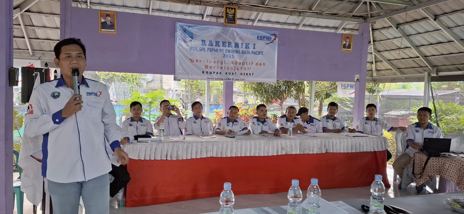 Lebih lanjut Abhel mengatakan Rakernik I PUK SPL FSPMI PT.Swarna Baja Pasific mengangkat tema ‘Bersinergi, Adaptif dan Berkelanjutan’.