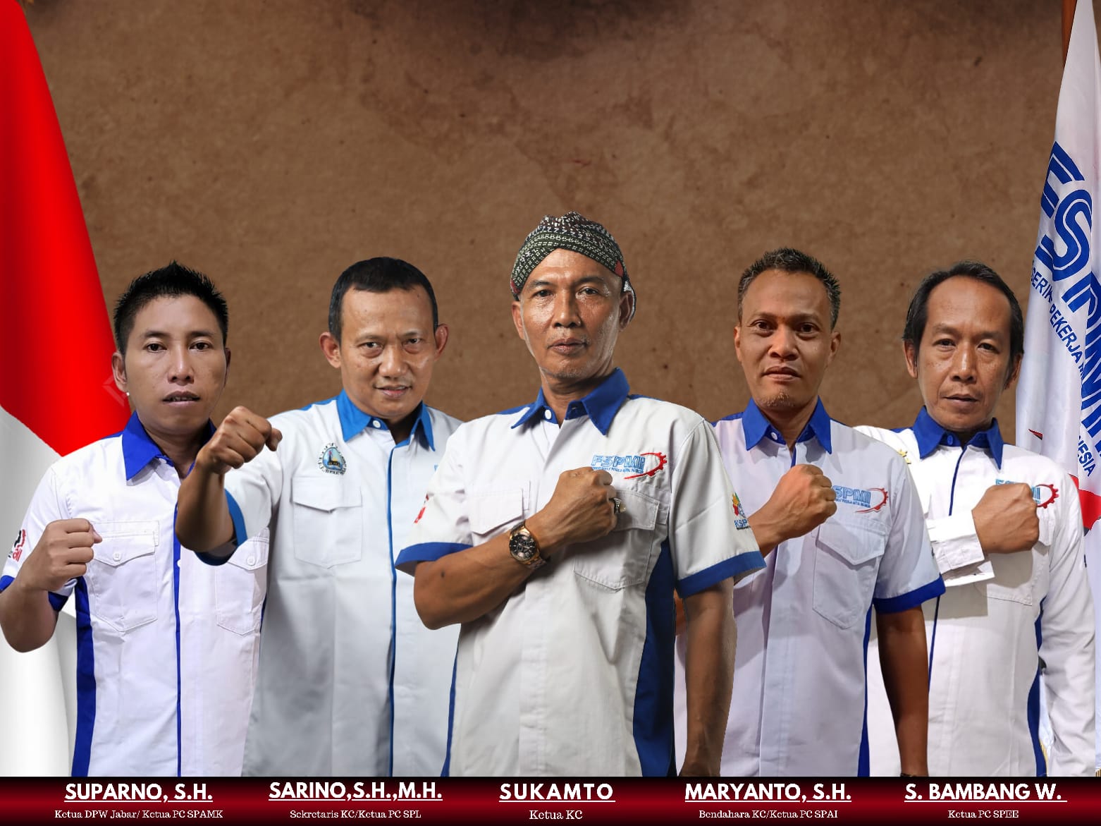 Ketua KC FSPMI Bekasi Sukamto menerima foto tersebut didampingi ketua DPW FSPMI Jawa Barat Suparno yang juga ketua PC SPAMK FSPMI Bekasi dan Staf KC FSPMI Bekasi Suparman.