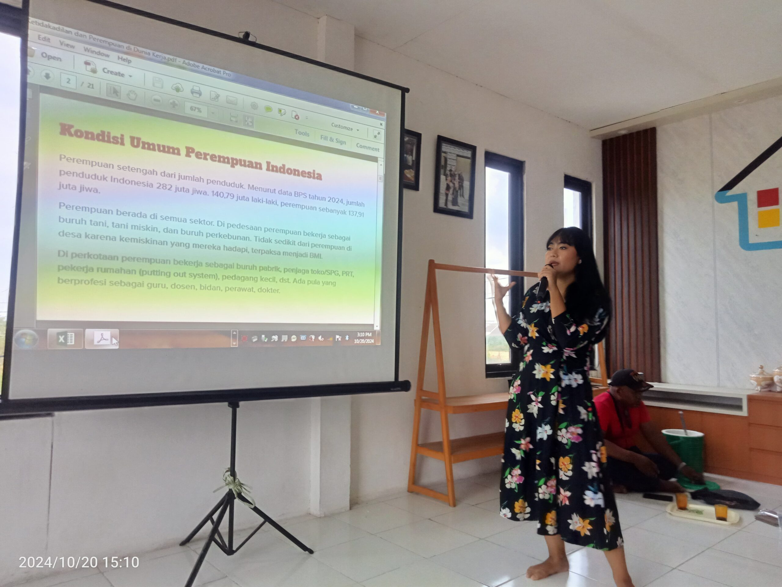 Dalam penyampaian materinya didepan anggota FSPMI kabupaten Gresik, Anindya Shabrina memberikan penjelasan apa saja bentuk permasalahan yang dihadapi oleh kelas pekerja perempuan salah satunya yang sering terjadi adalah isu pelecehan seksual di lingkungan tempat kerja atau perusahaan.