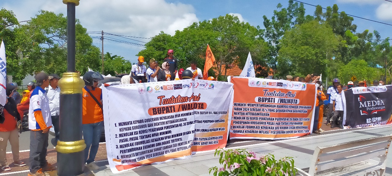 Dipimpin langsung oleh Sahbandi selaku Ketua KC FSPMI Ketapang dan di dampingi Oleh Muslimin, SP selaku DPW FSPMI Kalimantan Barat mereka menuntut kepada pihak Pemerintah agar UMK Ketapang Tahun 2024 Naik Sebesar 15%.