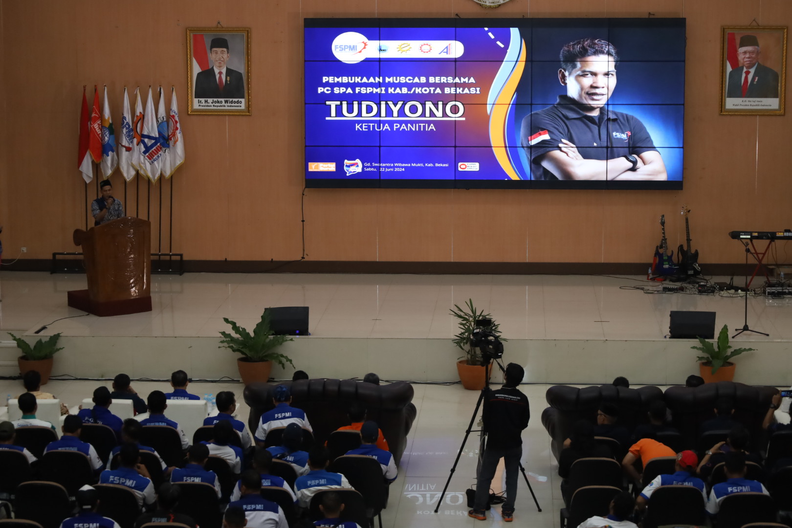 Bekasi, KPonline – Pembukaan Muscab Bersama PC SPA FSPMI Bekasi digelar di Gedung Swatantra Wibawa Mukti Kabupaten Bekasi, Jl. Wibawa Mukti, Desa Sukamahi, Kecamatan Cikarang Pusat, Sabtu (22/6/2024).
