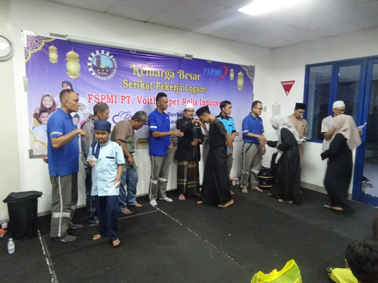” Terimakasih kepada Pengurus PUK SPL FSPMI PT. Voith Paper Rolls Indonesia dan Pimpinan Perusahaan yang sudah peduli ke lingkungan terdekat dan juga atas undangan acara buka puasa bersama ini, Semoga kedepan FSPMI semakin jaya “, ucapnya