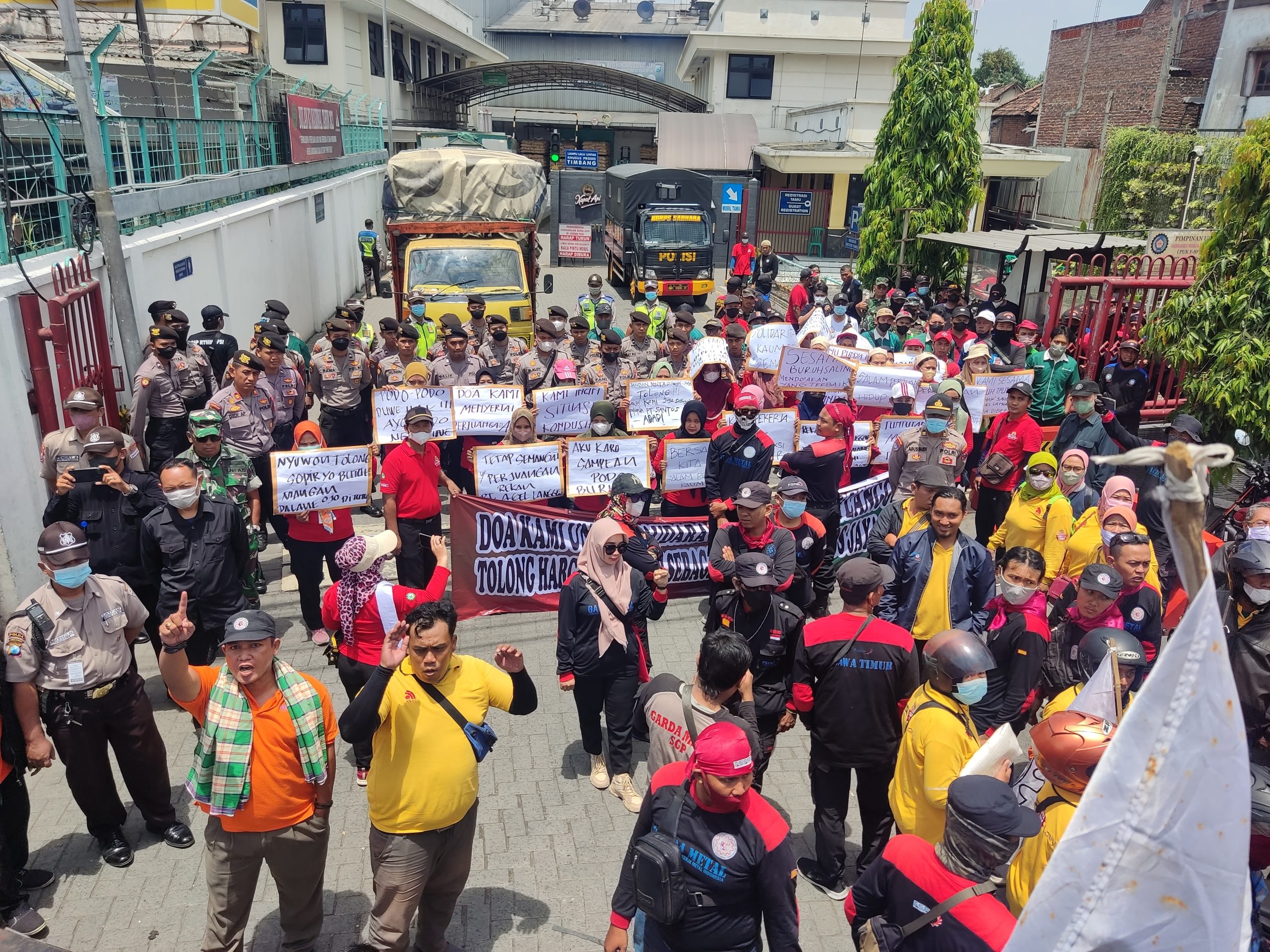 Pasuruan, KPonline – Kemacetan panjang terjadi di depan PT. Santos Jaya Abadi (PT. SJA) Jl. Raya Gilang No.159, Sidoarjo, dimana di depan pabrik yang berproduksi minuman sasetan tersebut dipenuhi massa buruh dari berbagai wilayah Jawa Timur.