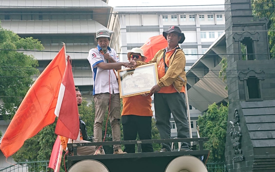 Dalam penghujung aksi serentak pada hari Senin (13/2/2023) dirinya berkesempatan naik ke mobil mokom untuk menyerahkan kenang-kenangan dari PUK SPAMK FSPMI PT. San Yu FMI berupa lukisan tenda perjuangan yang mereka tempati selama 1 tahun lebih dalam memperjuangkan hak pesangon mereka.