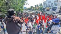 Surabaya, KPonline – Setelah melakukan aksi damai di depan Kantor Bank Indonesia Surabaya, ribuan massa buruh PT PAKERIN Mojokerto kembali bergerak menuju Bank Prima di Jl. Jembatan Merah No.15–17, Krembangan Selatan, Surabaya, Rabu, (30/07/2025).