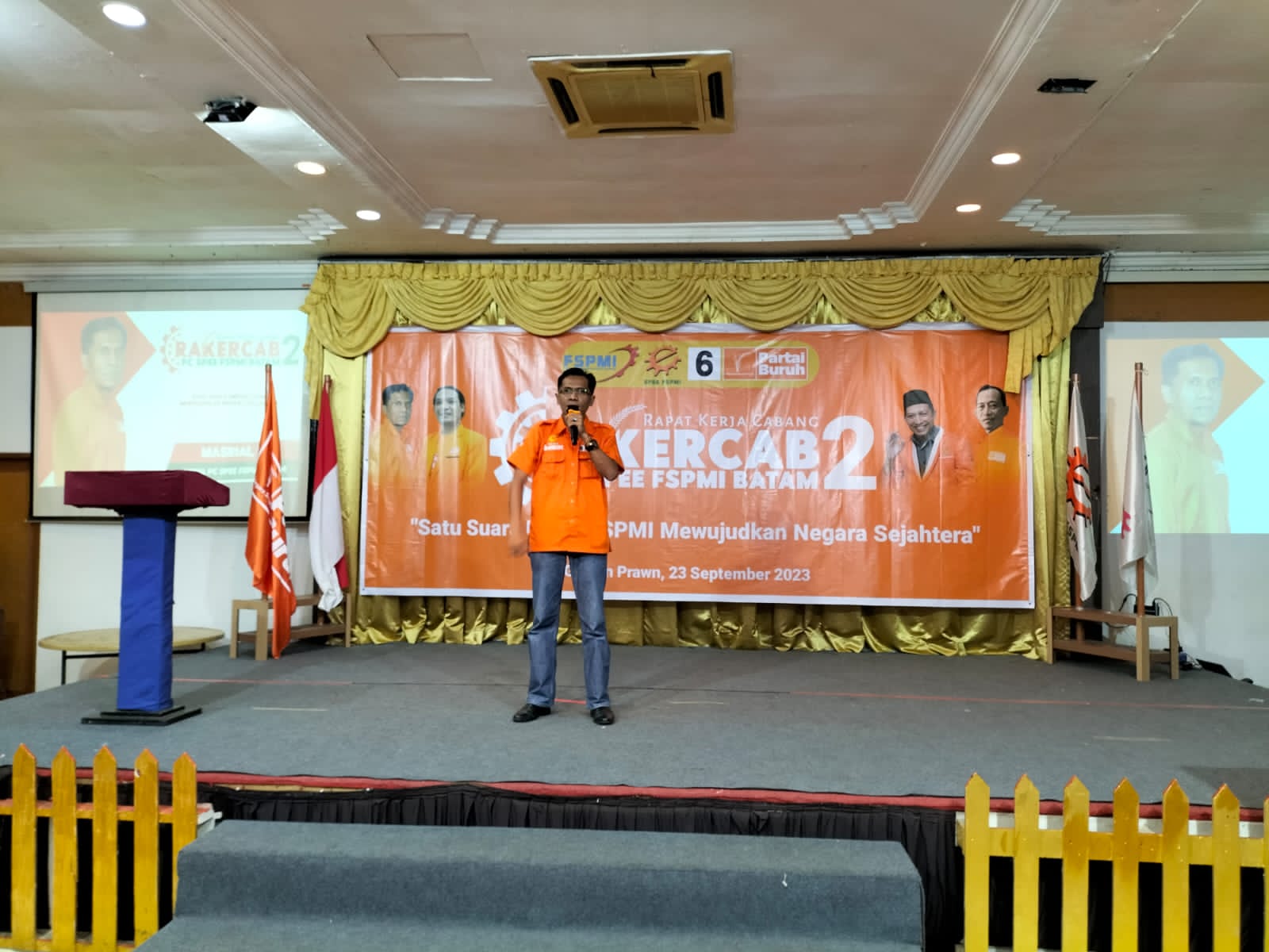 Batam, KPonline – Ketua PC SPEE FSPMI Batam, Masrial dalam sambutanya pada acara Rakercab PC SPEE FSPMI Batam yang digelar di Golden Prawn, Bengkong, Batam mengatakan kepada seluruh peserta Rakercab agar terus mendukung Partai Buruh.