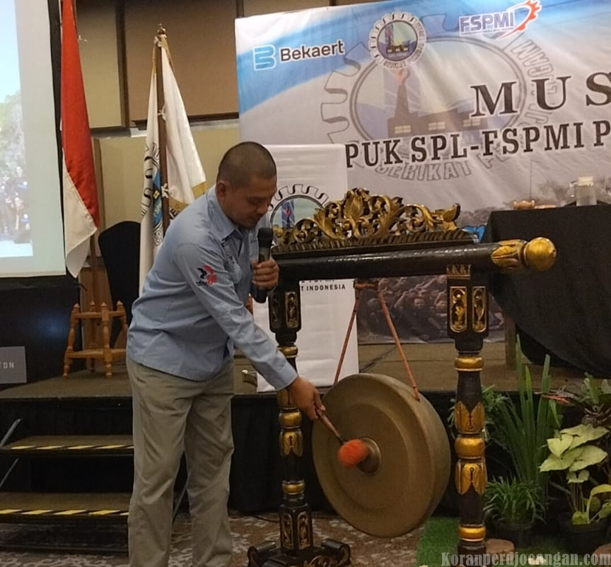 Yogyakarta, KPonline — Ketua Pimpinan Cabang (PC) SPL FSPMI Kabupaten Karawang, Dedi Heryadi, secara resmi menutup Musyawarah Unit Kerja (MUSNIK) VI PUK SPL FSPMI PT Bekaert Indonesia. Penutupan ditandai dengan pemukulan gong sebanyak tiga kali sebagai simbol berakhirnya seluruh rangkaian agenda MUSNIK VI.