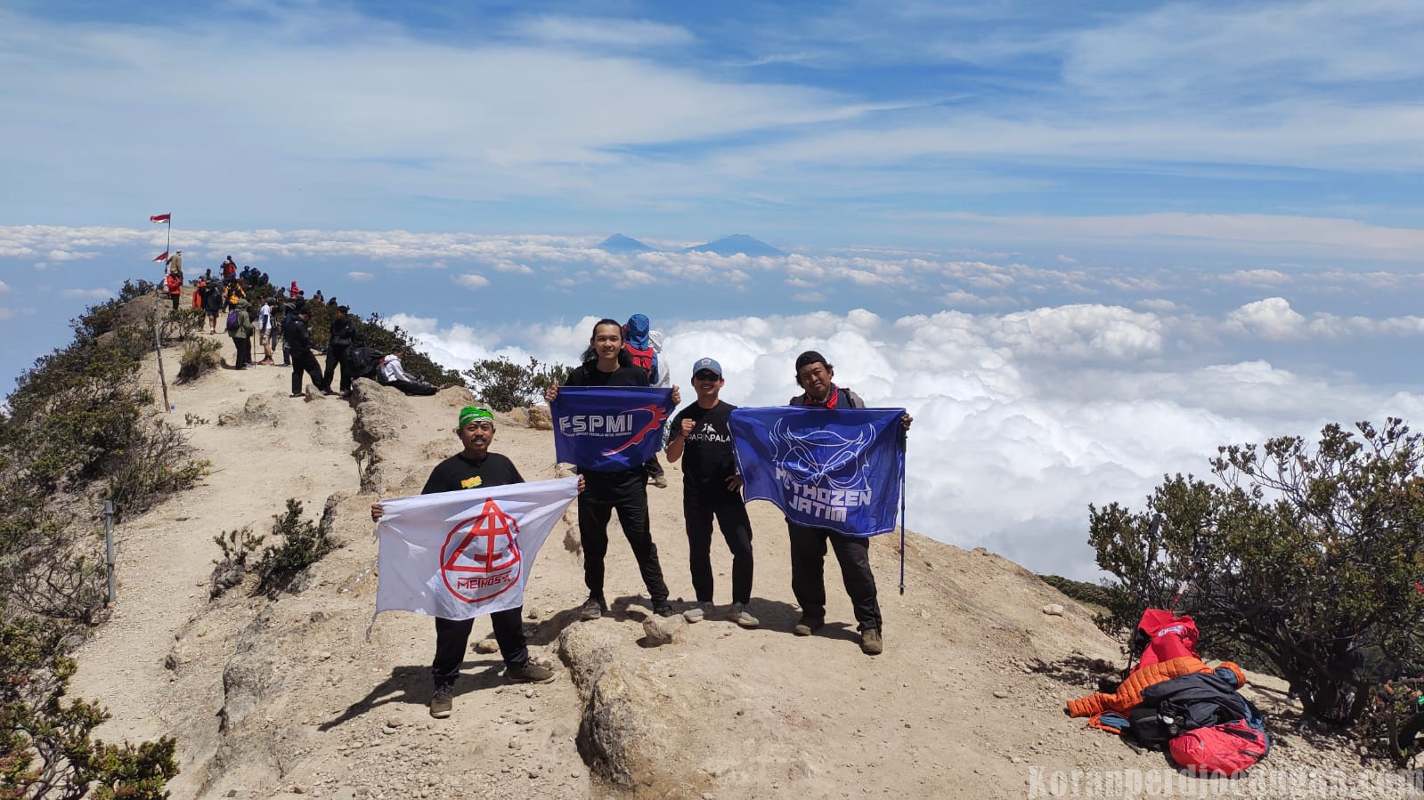 Namun, motivasi untuk mengibarkan tiga bendera di puncak menjadi penguat langkah mereka. “Setiap kali ingin berhenti, kami teringat bahwa bendera ini harus sampai puncak. Itu yang membuat kami terus maju,” tambah Agus Sujarwo.