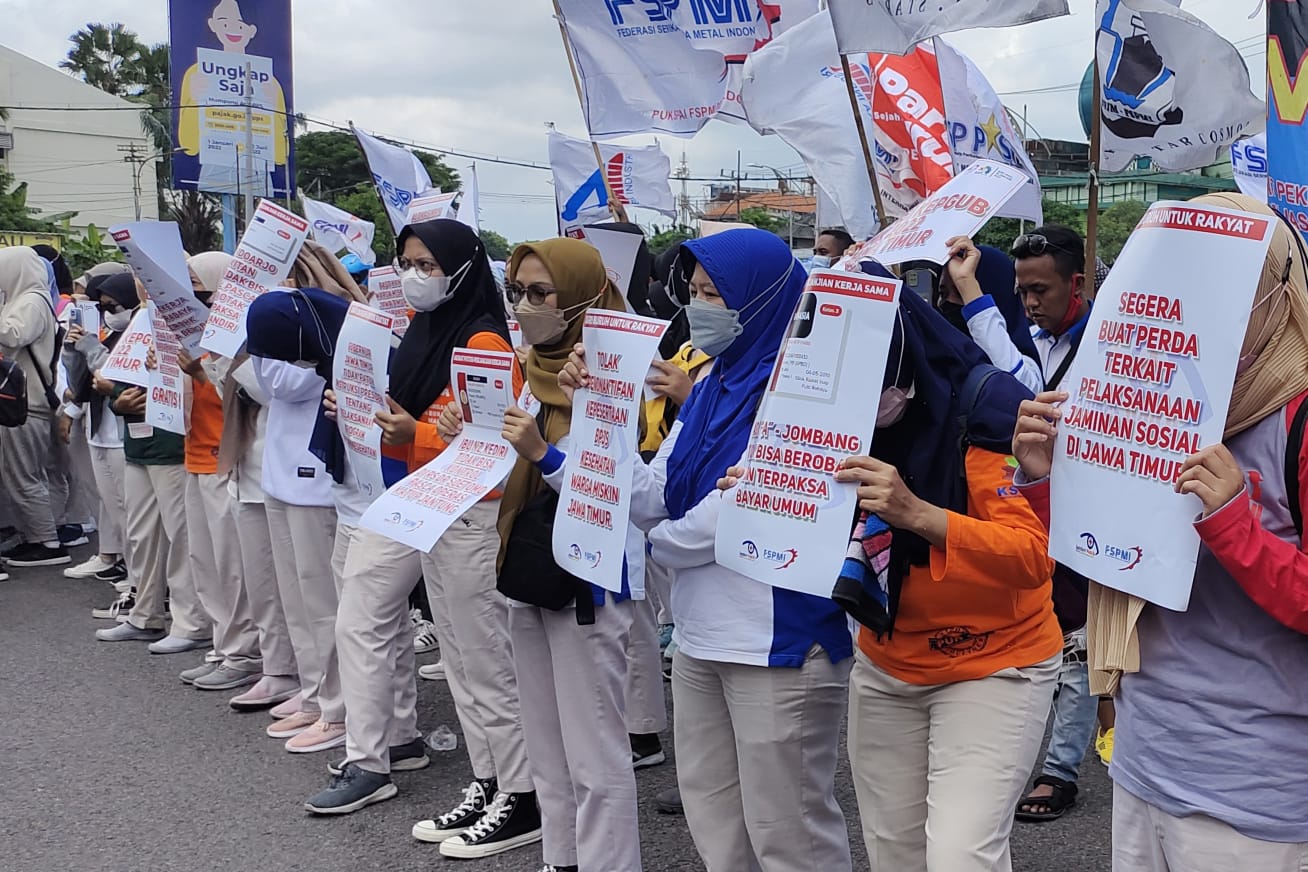 Pada peringatan Hari Buruh 1 Mei besok, kaum buruh akan mengajak seluruh elemen masyarakat untuk menyuarakan bersama hak kesehatan dan nasib warga miskin. Jika tidak ada solusi, tentu ini akan menjadi bukti ketidakpedulian dan ketidakmampuan Pemprov Jatim dibawah kepemimpinan Khofifah.
