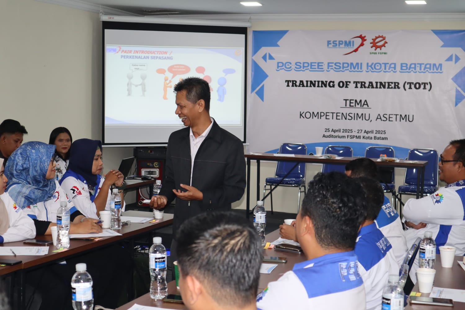 Batam,KPonline – Mendatangkan Trainer langsung dari Pimpinan Pusat FSPMI, Suherman, yang lebih akrab dipanggil Bung Herman datang langsung dari Jakarta ke Batam untuk memberikan materi Training Of Trainer yang rencananya akan dihelat selama 2 hari ke depan, dimulai hari ini, Jumat, (25/4), bertempat di Auditorium FSPMI Kota Batam, pendidikan yang diikuti oleh orang-orang Bidang I PCEE FSPMI Kota Batam ini tampak semangat dengan kegiatan TOT bertemakan ‘Kompetensimu, Asetmu!’. Bung Herman sebagai pemateri utama dalam pendidikan kali ini, adalah salah satu yang menjabat Pimpinan Pusat FSPMI di Bidang Organisasi dan Pendidikan. Beliau masih bekerja di PT. Honoris Industri, dan sangat aktif di dunia Serikat Pekerja sejak tahun 1993.