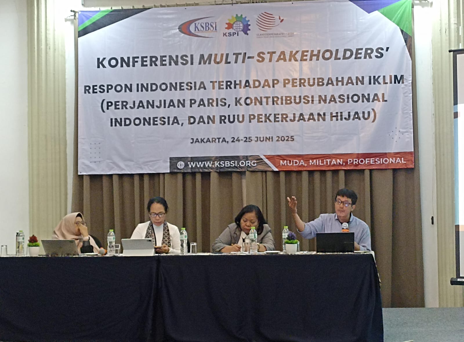 Jakarta, KPonline – Konfederasi Serikat Buruh Seluruh Indonesia (KSBSI), bersama Konfederasi Serikat Pekerja Indonesia (KSPI), dan didukung oleh Danish Trade Union Development Agency (DTDA) dari Denmark, menyelenggarakan Konferensi Multi Pemangku Kepentingan bertema “Respon Indonesia terhadap Perubahan Iklim dalam Perjanjian Paris dan Kontribusi Nasional Indonesia untuk Undang-Undang Pekerjaan Hijau”. Selasa (24/6/25).