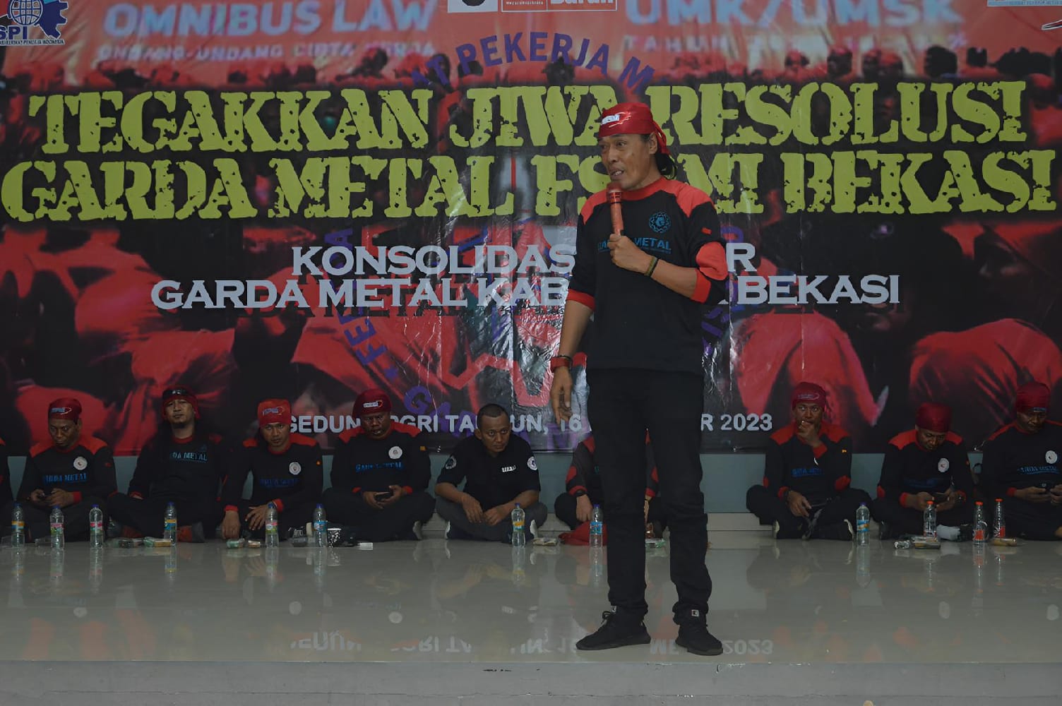 Dengan mengangkat tema ‘Tegakkan Jiwa Resolusi Garda Metal FSPMI Bekasi’ konsolidasi akbar kali ini dihadiri pimpinan DPW FSPMI Jawa Barat, pimpinan Konsulat Cabang FSPMI Bekasi, pimpinan nasional dan daerah Garda Metal, serta ratusan anggota Garda Metal FSPMI Kabupaten dan Kota Bekasi.