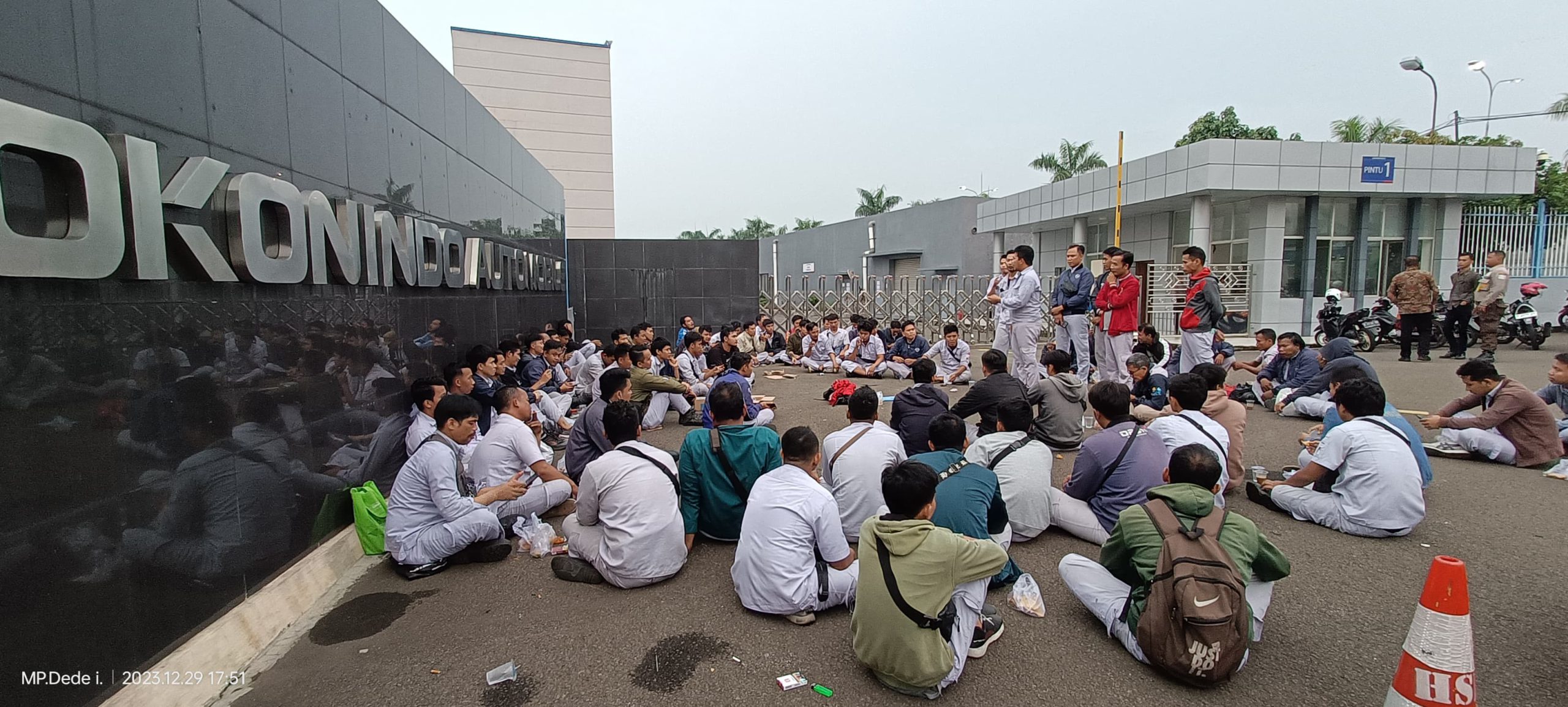 Serang, KPonline – Dalam upaya memantapkan dan menyakinkan serta penguatan terhadap anggota dalam berorganisasi PUK SPAMK FSPMI PT. Sokonindo Automobile menggelar konsolidasi dan sekaligus mensosialisasikan Perjanjian Kerja Bersama (PKB) yang akan dirundingkan dengan pihak menajemen bertempat di depan halaman perusahaan, Kawasan Industri Modern Cikande, Jumat (29/12/2023).