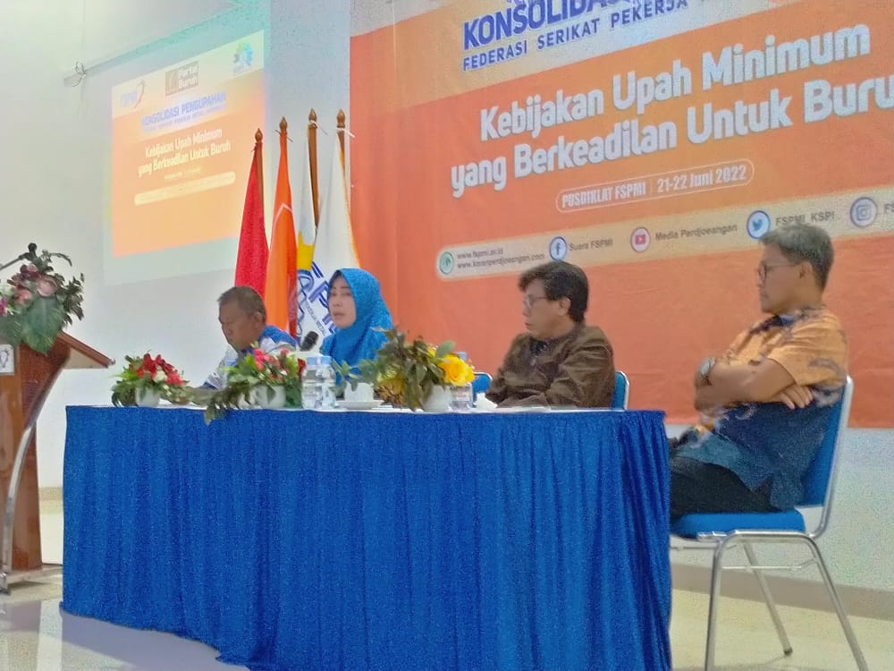 Cisarua, KPonline – Selama dua hari kedepan, 21-22 Juni 2022 DPP FSPMI mengagendakan Konsolidasi Pengupahan di Pusdiklat FSPMI Cisarua Bogor. Hadir sebagai pemateri adalah Presiden FSPMI, Riden Hatam Aziz, Vice President bidang Pengupahan, Winarso, direktur Pengupahan, Omo, direktur LBH DPP FSPMI, M. Jamsari. Selain itu hadir juga anggota Dewan Pengupahan Nasional dari unsur KSPI, Mirah Sumirat.