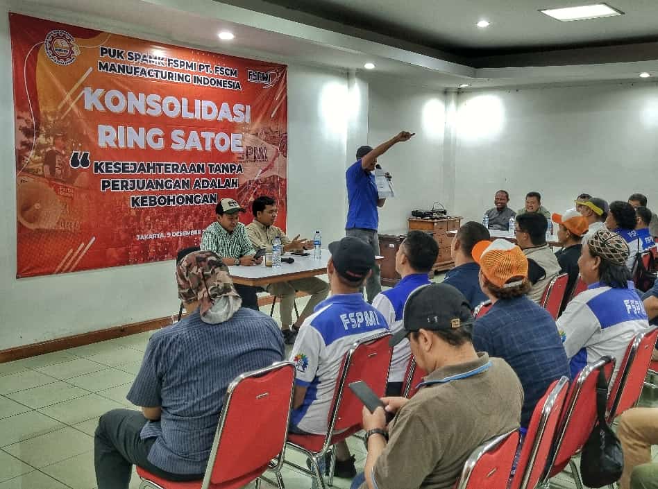 Jakarta, KPonline – Sabtu 9 Desember 2023, PUK SPAMK FSPMI PT. FSCM MANUFACTURING INDONESIA menggelar konsolidasi untuk Ring Satoe yang dihadiri PUK, pleno dan Garda Metal dari perusahaan grup otomotif ini.