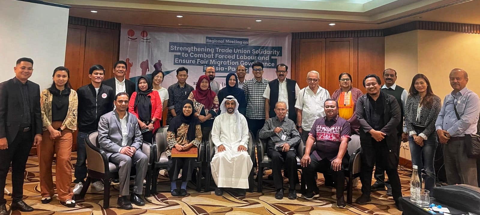 Fhoto Bersama peserta Pertemuan International Trade Union Confederation (ITUC) Regional Meeting on Strengthening Trade Union Solidarity to Combat Forced Labour and Ensure Fair Migration Governance in Asia-Pacific, yang berlangsung di Jakarta pada 22–23 Juli 2025. Selasa (22/7/2025), Foto : Dimas