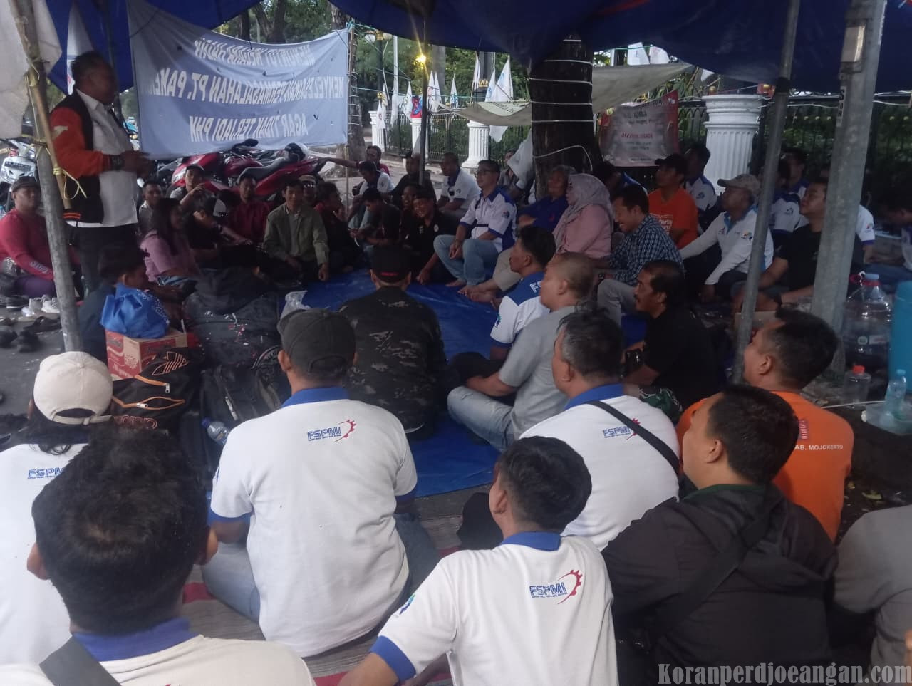 Surabaya, KPonline – Perjuangan buruh PT Pakerin yang mendirikan tenda juang di depan Kantor Gubernur Jawa Timur, Jalan Pahlawan Surabaya, kembali mendapat dukungan moril yang luar biasa. Kamis (18/9/2025), jajaran DPP FSPMI dan perwakilan PP SPAI hadir langsung menyapa dan memberi semangat kepada kawan-kawan buruh yang sedang berjuang menuntut keadilan.