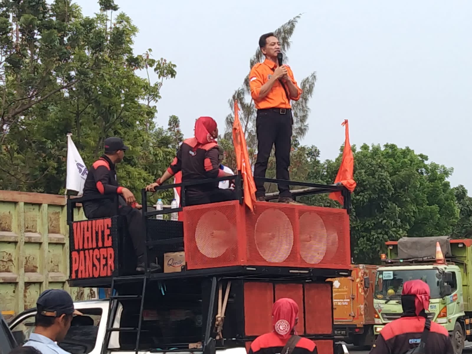 Masa aksi unjuk rasa dimulai dengan konvoi kendaraan menjemput para masa aksi dari gabungan seluruh PUK FSPMI sekota Cilegon.