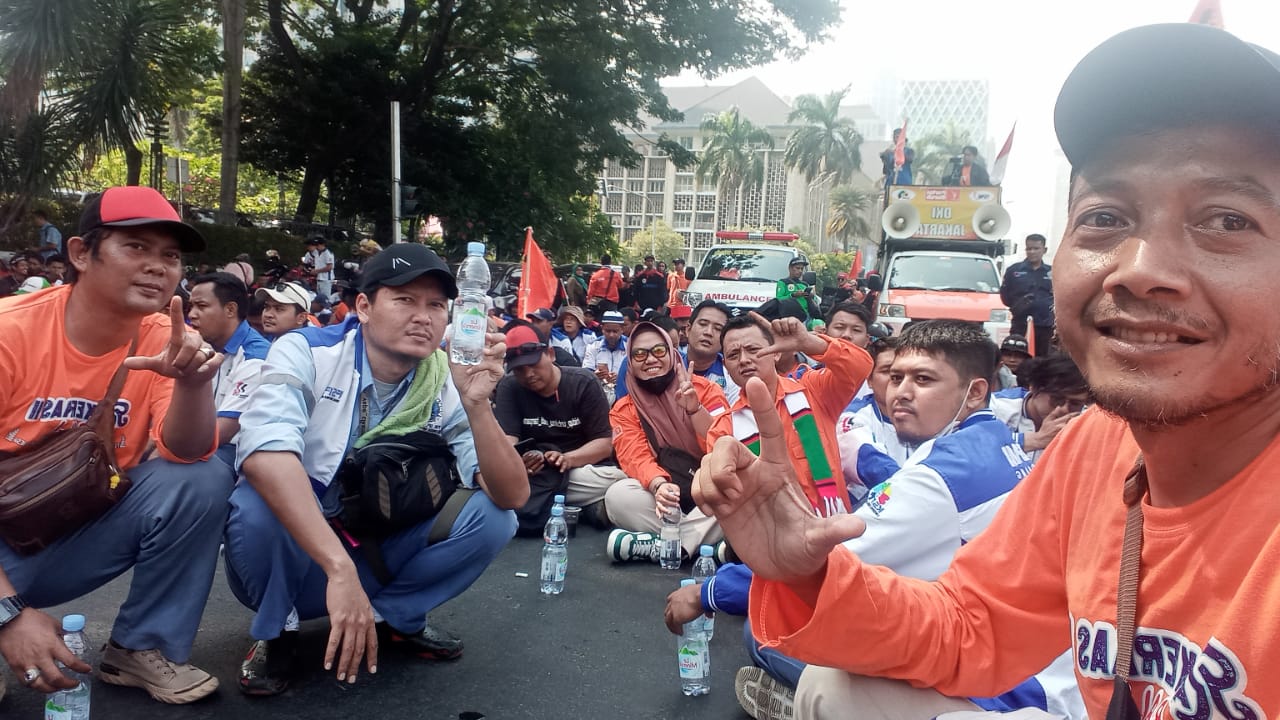 Sejak pukul 10. 00 Wib pagi, Ribuan Peserta Aksi KSPI dan Partai buruh berdatangan dari Bandung, Purwakarta, Subang, Karawang, Bekasi, Bogor, Jakarta, Tangerang, Serang dan Cilegon dengan menggunakan Baju Orange ciri khasnya dari Partai Buruh dan Masing masing Federasi sesuai dengan Baju kebanggaan nya yang tergabung dalam KSPI.