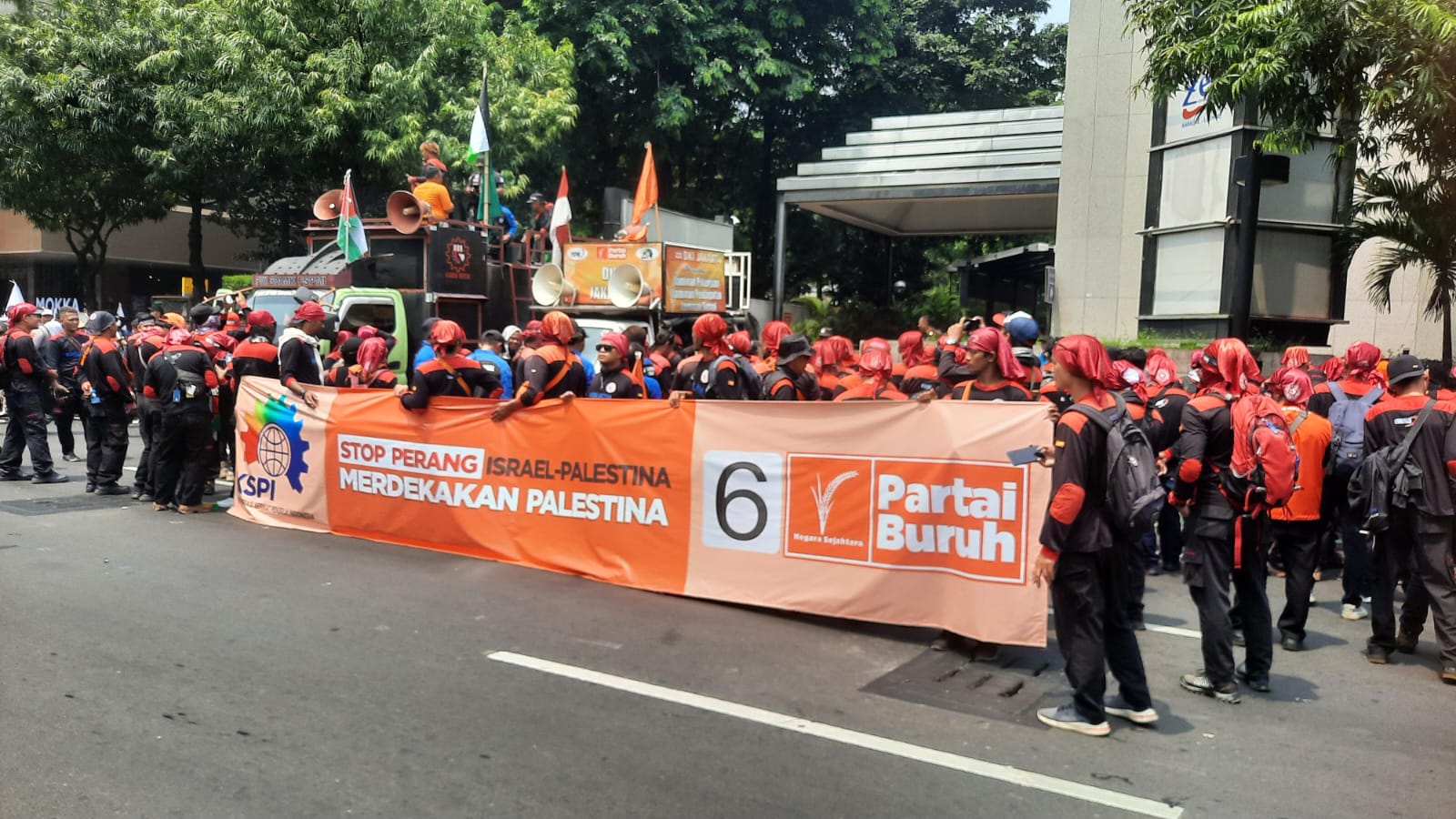 Jakarta, KPonline – Pada Hari ini Jum’at (27/10) PUK SPL FSPMI PT. Indonesia Nippon Stell Pipe (INSP), PUK SPL FSPMI PT. Bekaert Indonesia (BI), PUK SPL FSPMI PT. Techno Wood Indonesia (TWI), PUK SPL FSPMI PT. Saranacentral Bajatama, Tbk (SCB), PUK SPL FSPMI PT. Nestle Indonesia Factory Karawang, PUK SPL FSPMI PT. Daiki Aluminium Indonesia (DAI) dan PUK SPL FSPMI PT. Molten Aluminium Producer Indonesia (MAP-I) tergabung dalam Pimpinan Cabang Serikat Pekerja Logam FSPMI Kabupaten Karawang bersama Partai Buruh menghadiri dan mensukseskan Aksi Serentak dalam Tuntutan Kenaikan Upah Minimum Tahun 2024 Sebesar 15 % dan juga menuntut perang Hamas vs Israel di Palestina dihentikan.