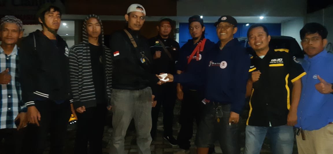 Penyerahan bantuan logistik dan donasi, dengan terpaksa dilakukan dipinggir jalan masuk ke wilayah yang terdampak cukup parah tersebut.