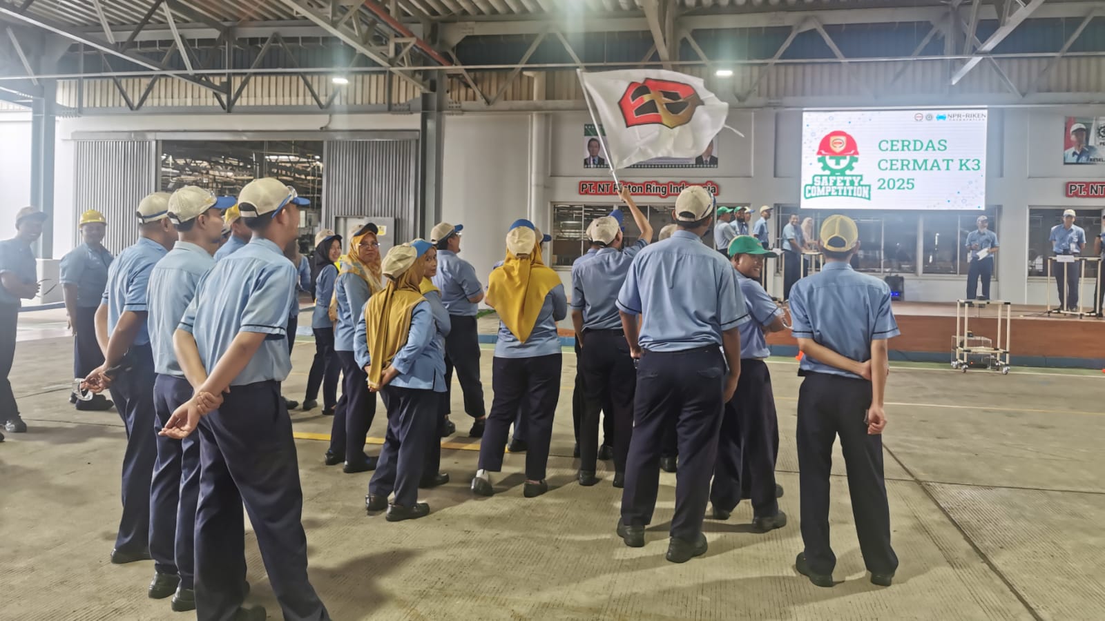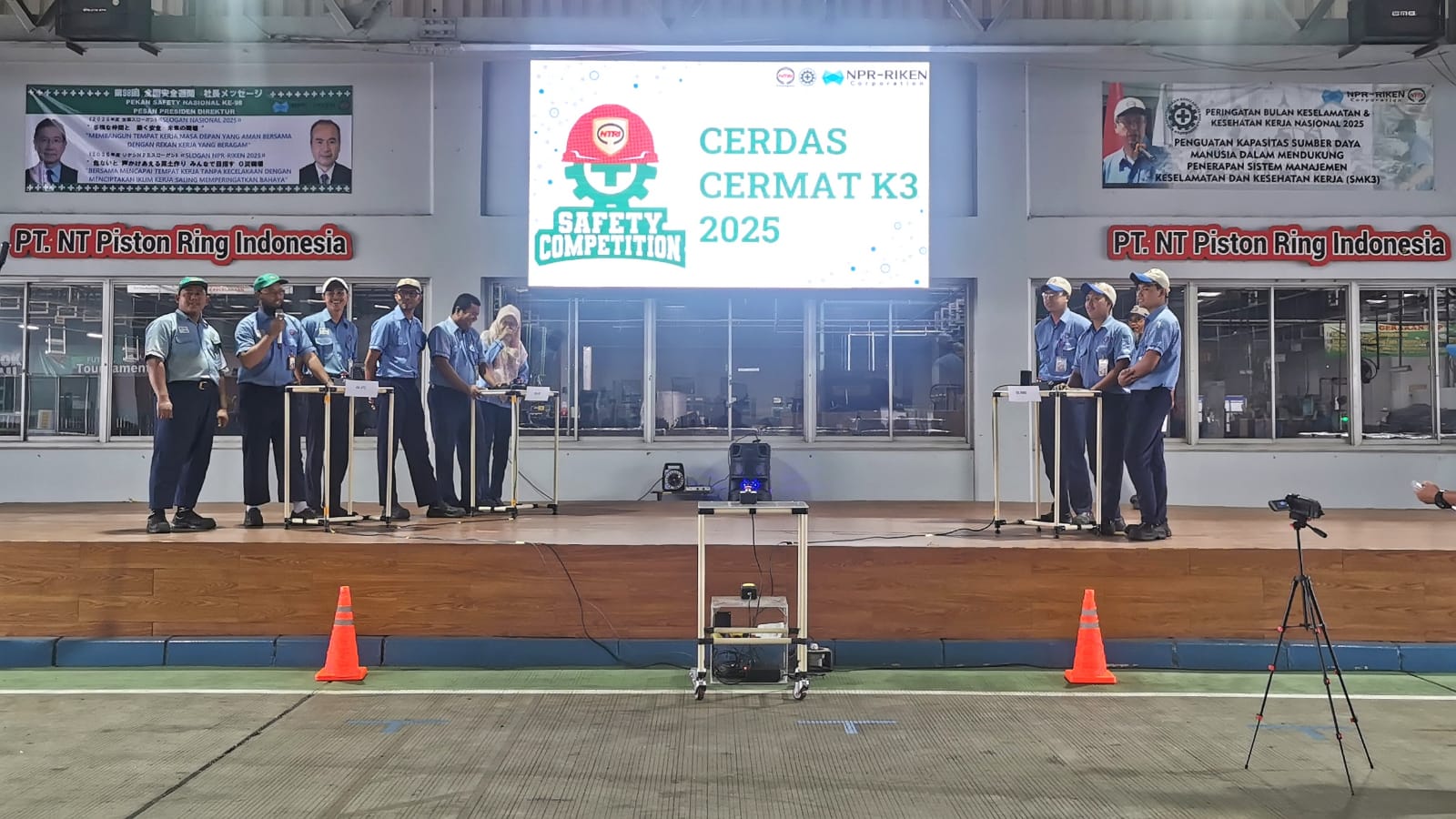Karawang, KPonline – Perlombaan K3 (Keselamatan dan Kesehatan Kerja) jenis cerdas cermat PT. NT Piston Ring Indonesia (NTRI) grup Ke-2 berlangsung meriah. Lomba cerdas cermat diikuti oleh 3 line atau tim, line 4W Ato , line (QA-QE-Bunseki), line 2 Piece Oil Ring. Untuk setiap line diwakili oleh 3 orang. Perlombaan berlangsung 30 menit dari pukul 12.30 Wib sampai dengan pukul 13.00 Wib. Kamis (10/7/25).