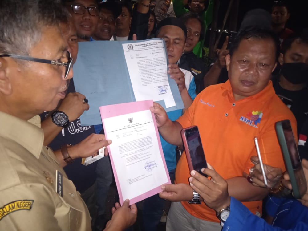 Masa aksi Aliansi Buruh Bogor bertahan hingga malam hari karena menunggu surat Bupati hasil audensi para Aliansi Pekerja/Buruh Bogor dengan pihak terkait di tanda tangani oleh H.Iwan Setiawan selaku Plt Bupati Kabupaten Bogor. Audensi atas aksi penyampaian aspirasi buruh Bogor dihadiri oleh delapan belas serikat pekerja/serikat buruh Kabupaten Bogor sebagai perwakilan dari seluruh serikat pekerja/serikat buruh se-Kabupaten Bogor yang diterima oleh Plt.Bupati Kabupaten Bogor, Ketua DPRD Kabupaten Bogor, Kapolres Bogor, Dandim 0621/Kabupaten Bogor dan Kepala Dinas Tenaga Kerja Kabupaten Bogor.