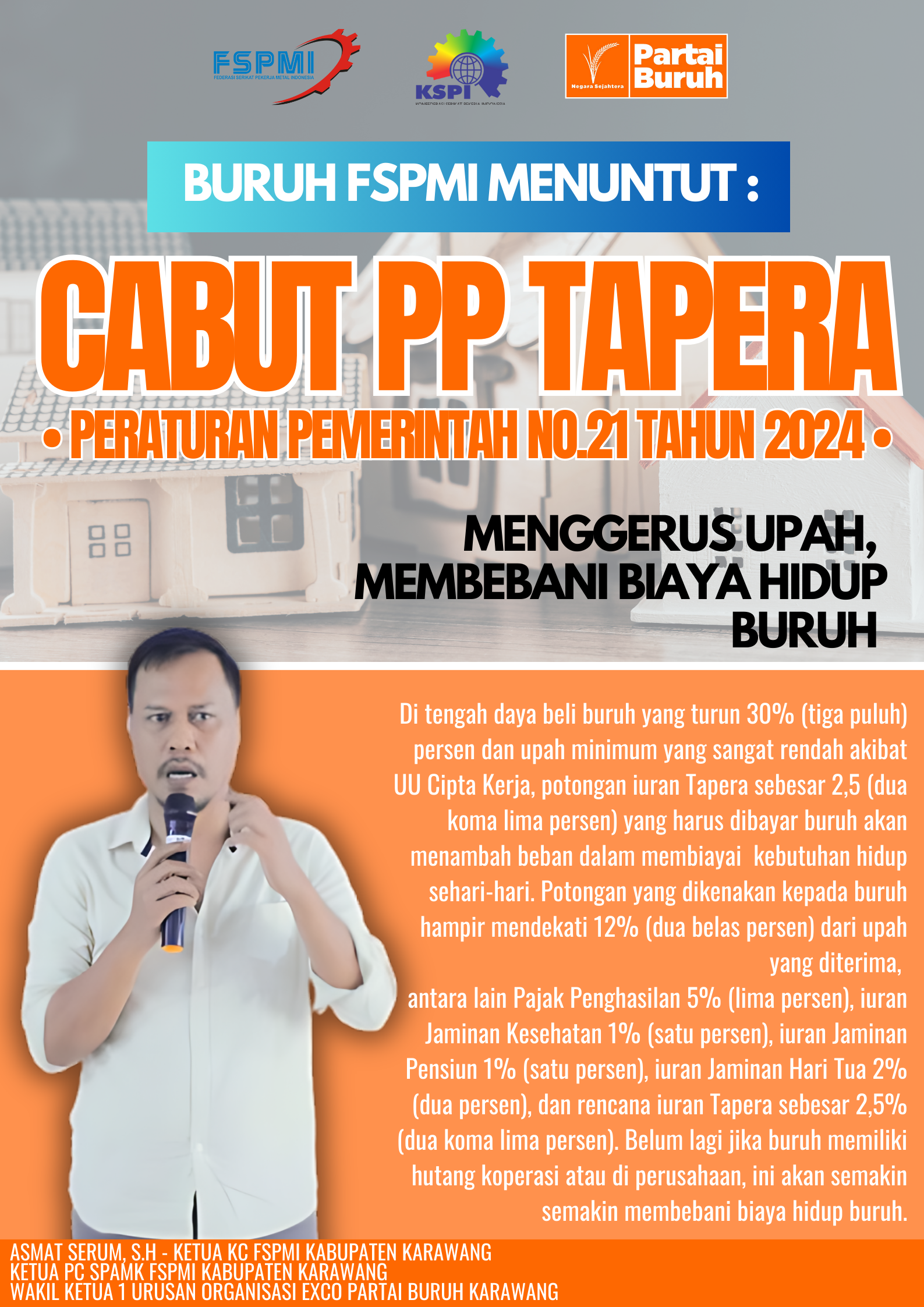 Ketua KC FSPMI Kabupaten Karawang, Asmat Serum, S.H., menyampaikan, Tapera tersebut diyakini bakal memberatkan para pekerja, program Tapera ini seperti sebuah program yang membuat masyarakat syok karena banyak masalah yang terjadi.