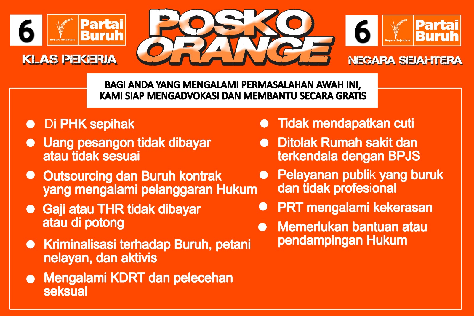 Hal tersebut ditegaskan langsung oleh Presiden Partai Buruh, Said Iqbal, dalam launching Posko Orange, di Jl. Radjiman, Pupar, Cakung, Jakarta. Posko tersebut akan terbuka, dan siap bekerja setiap harinya untuk melayani masyarakat.