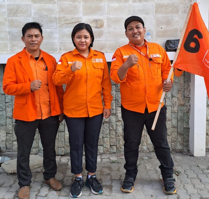 Salah satu caleg Partai Buruh yang berdiri diatas Mobil Komando tanpa henti memberikan sosialisasi dan edukasi kepada masyarakat untuk terlibat dan berpartisipasi aktif datang ke TPS yang sudah ditentukan sesuai Daftar Pemilih Tetap (DPT) untuk menggunakan hak suaranya.