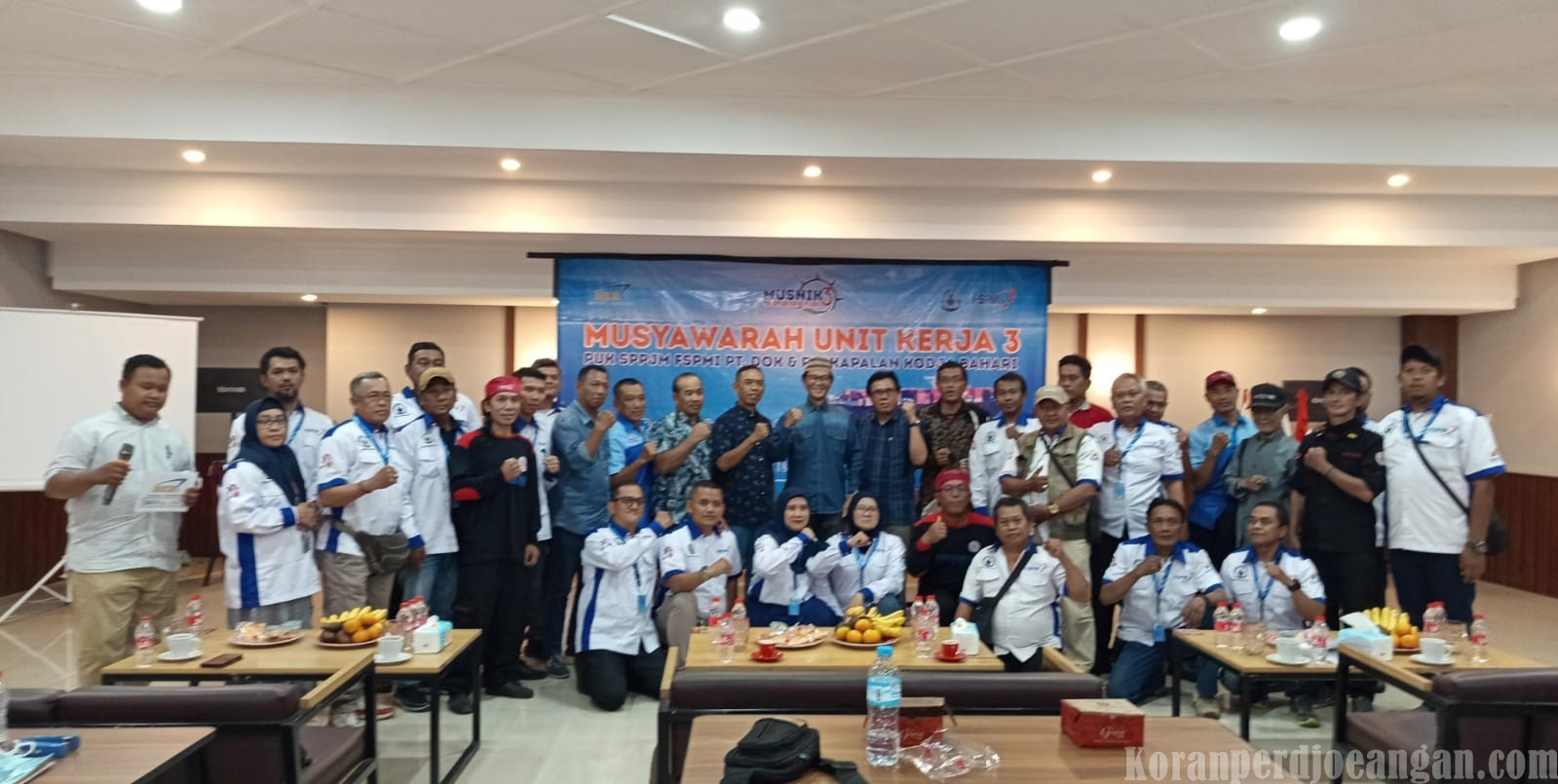 Bekasi, KPonline – Pimpinan Unit Kerja (PUK) Serikat Pekerja Perkapalan dan Jasa Maritim (SPPJM) Federasi Serikat Pekerja Metal Indonesia (FSPMI) PT. Dok dan Perkapalan Kodja Bahari hari ini, 18 Oktober 2025 mengadakan Musyawarah Unit Kerja (Musnik) yang ketiga. Sebagai agenda tiga tahunan guna memilih kepengurusan baru, mengevaluasi kinerja dan menyusun program kerja organisasi dan menentukan arah baru untuk meningkatkan kinerja dan solidaritas anggota.
