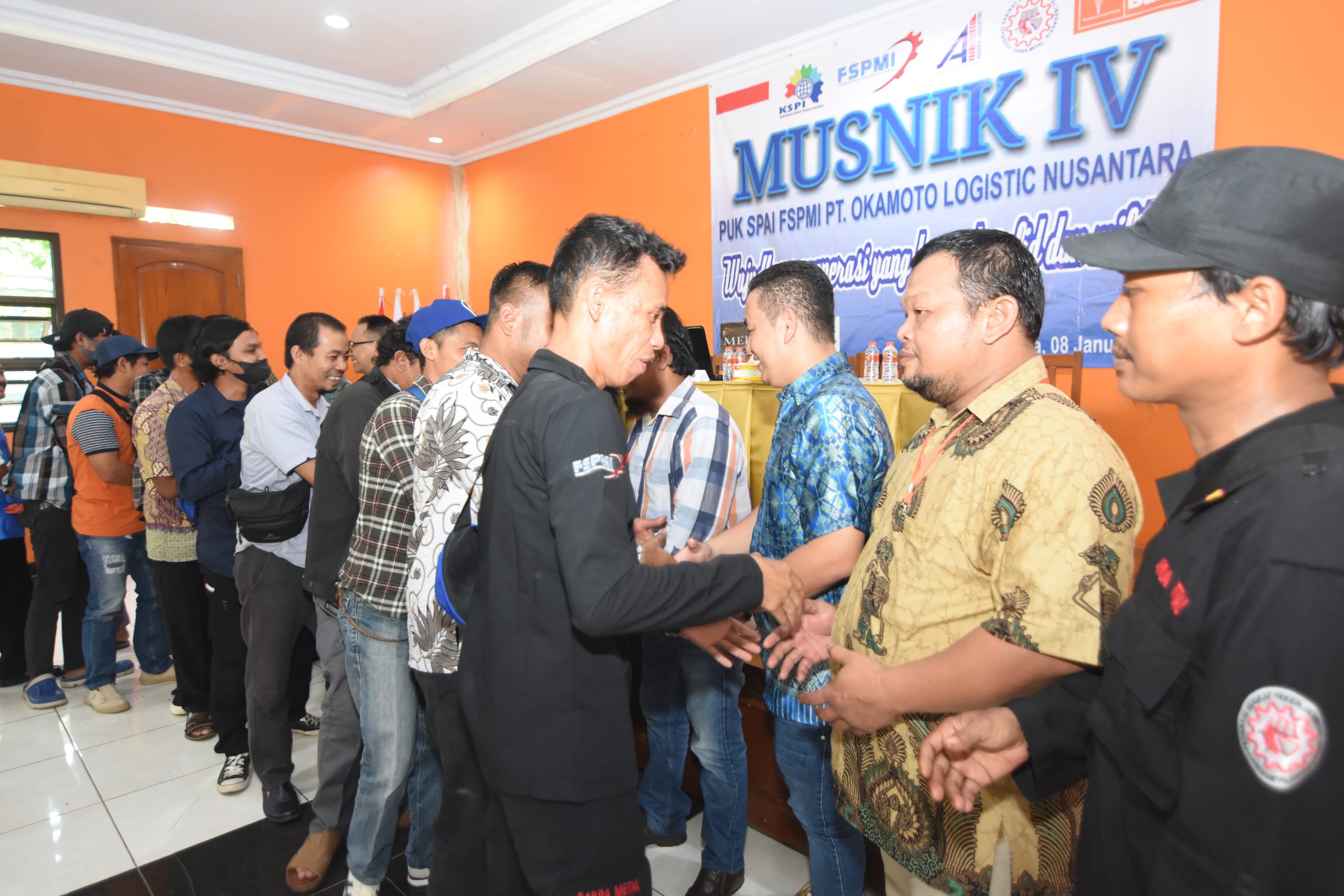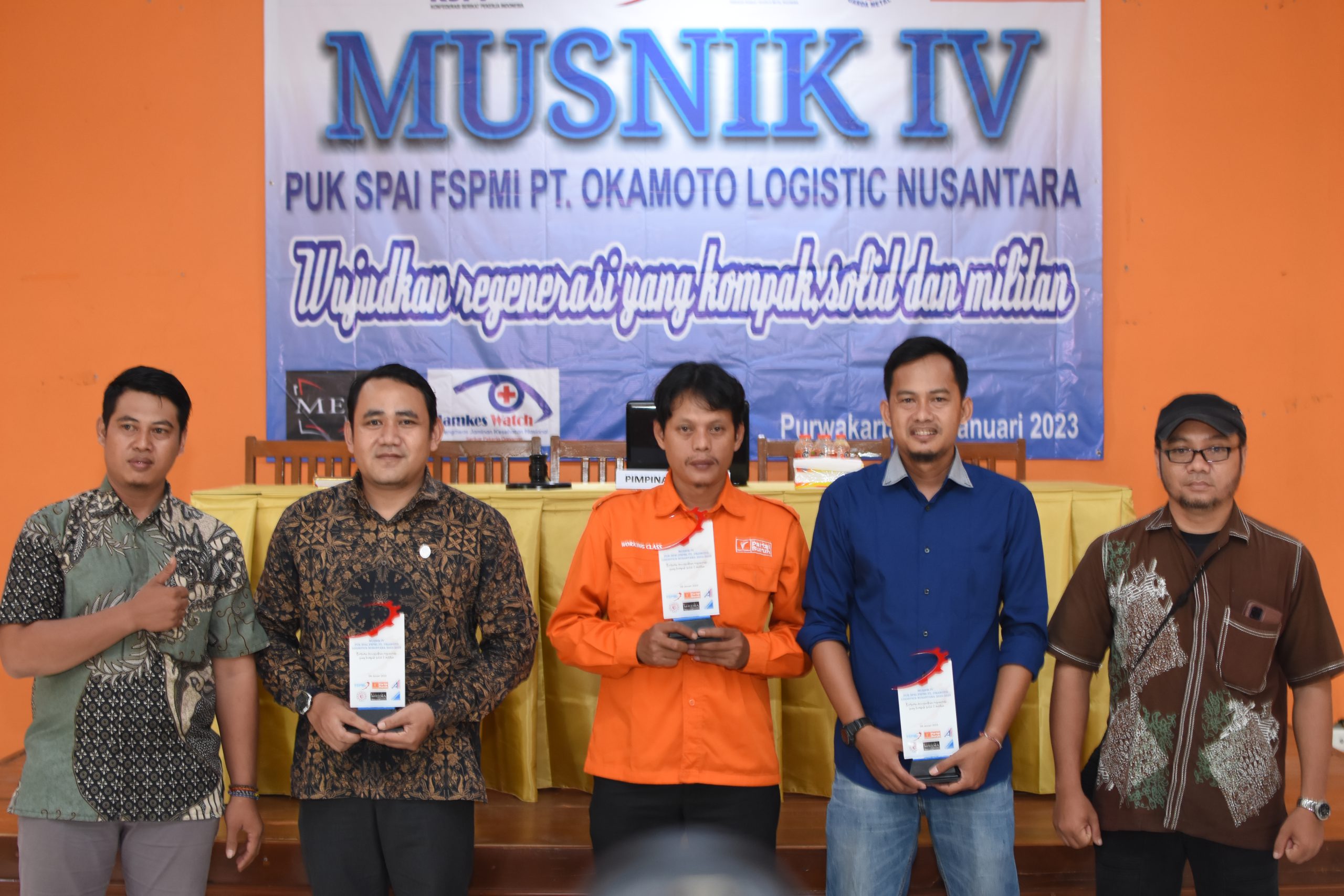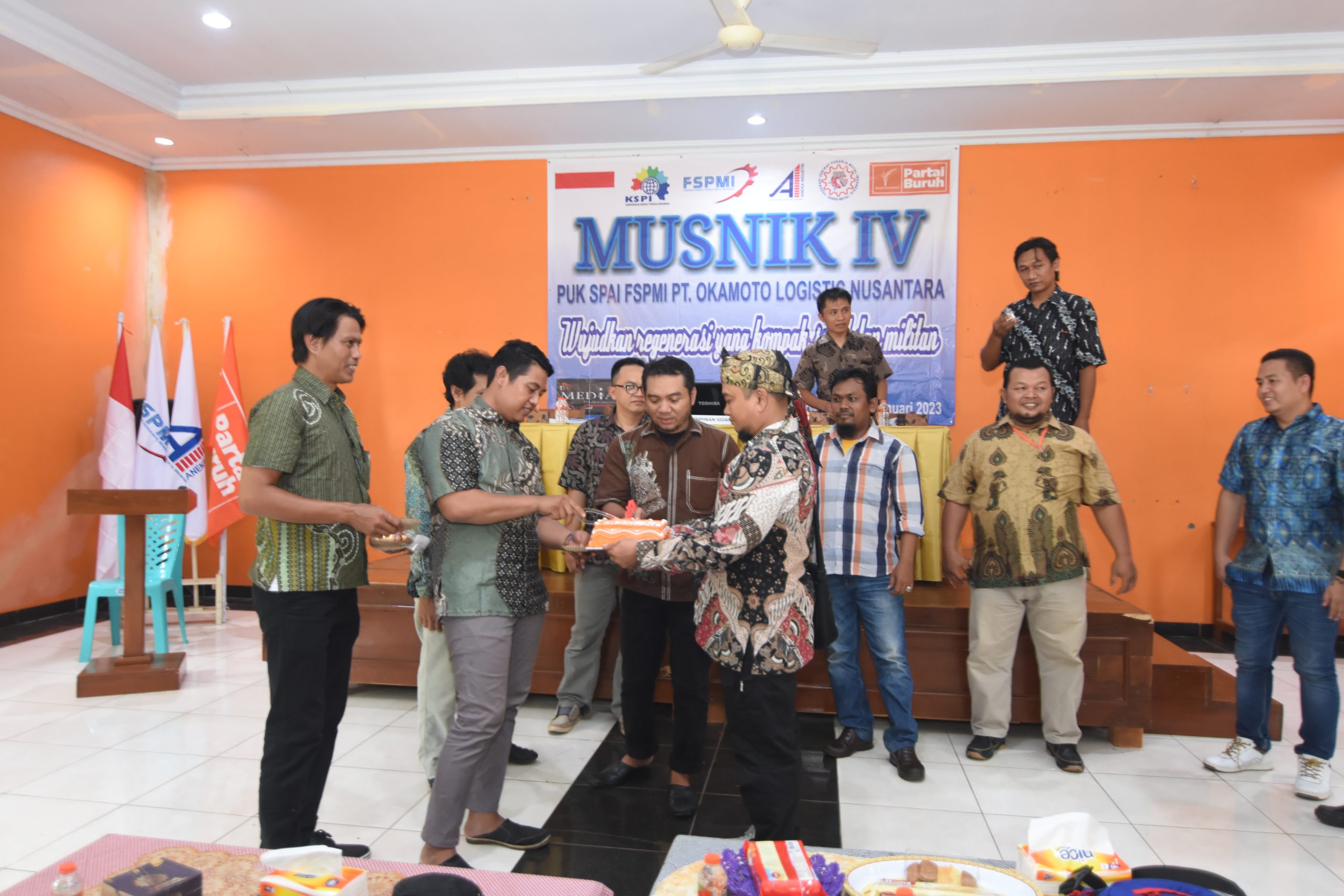 Untuk itu, Pimpinan Unit Kerja Serikat Pekerja Aneka Industri Federasi Serikat Pekerja Metal Indonesia (PUK SPAI-FSPMI) PT. Okamoto Logistics Nusantara menyelenggarakan Musyawarah Unit Kerja (Musnik) IV di Aula Anugrah Water Park Bunder, Kec. Bungursari, Kab. Purwakarta. Minggu, (8/1/2023).