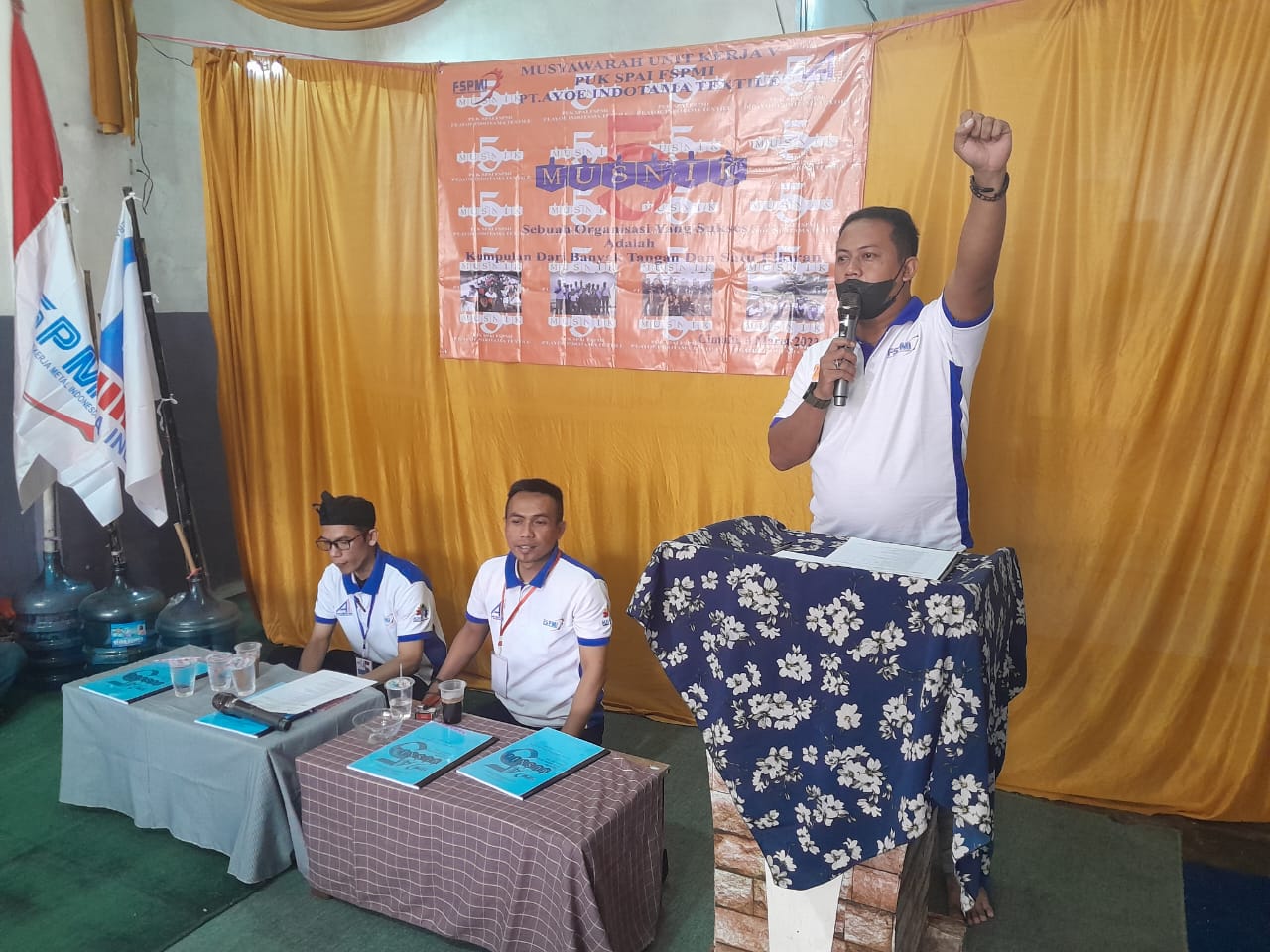Ratam sebagai ketua penitia Musnik V PUK SPAI FSPMI PT. Ayoe Indotama Textile, menyampaikan saat sambutan mengucapkan rasa syukur atas terselenggaranya kegiatan ini, dan berharap momentum ini menjadi awal suatu perubahan untuk kedepannya.