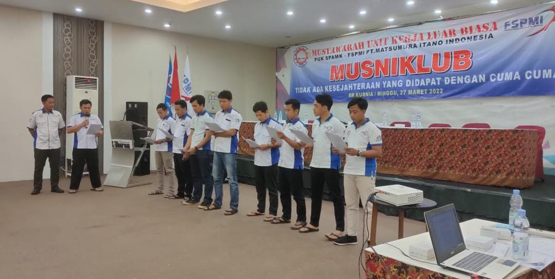Seperti yang dialami oleh PUK SPAMK FSPMI PT. Matsumura Itano Indonesia (PUK MII), mereka baru-baru ini telah mengadakan Musyawarah Unit Kerja Luar Biasa (MUSNIKLUB) dengan tema “Tidak Ada Kesejahteraan Yang Didapat Dengan Cuma-cuma”.