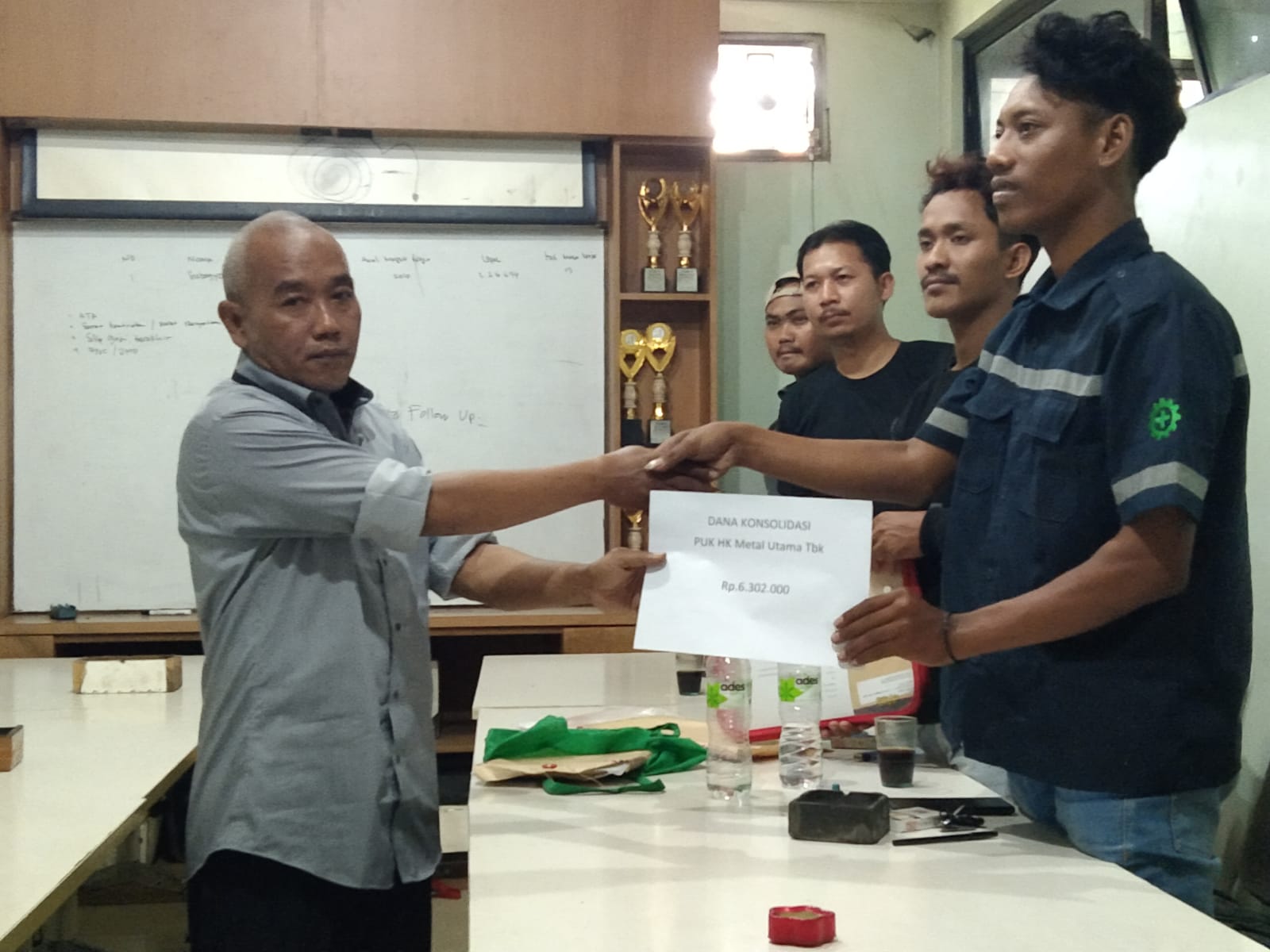 Secara simbolis penyerahan berkas organisasi diterima oleh Yanto selaku bidang organisasi PC SPL FSPMI Bekasi dan penandatanganan berita acara bahwa terhitung 15 Februari 2023 PUK SPL FSPMI PT HK Metal Utama Tbk dinyatakan ‘bubar’ karena perusahaan PT. HK Metal Utama Tbk di seluruh Indonesia tutup. (Yanto)