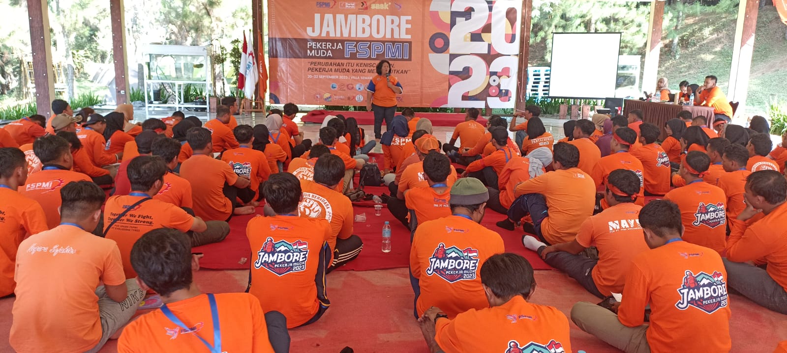 Bogor, KPonline – Nani Kusmaeni sebagai Wakil Presiden DPP FSPMI dengan bidang tugas pendidikan dan kaderisasi hadir dalam Jambore Pekerja Muda FSPMI 2023 yang diselenggarakan di Villa Semak Daun, Bogor. Kamis, (21/9/2023).