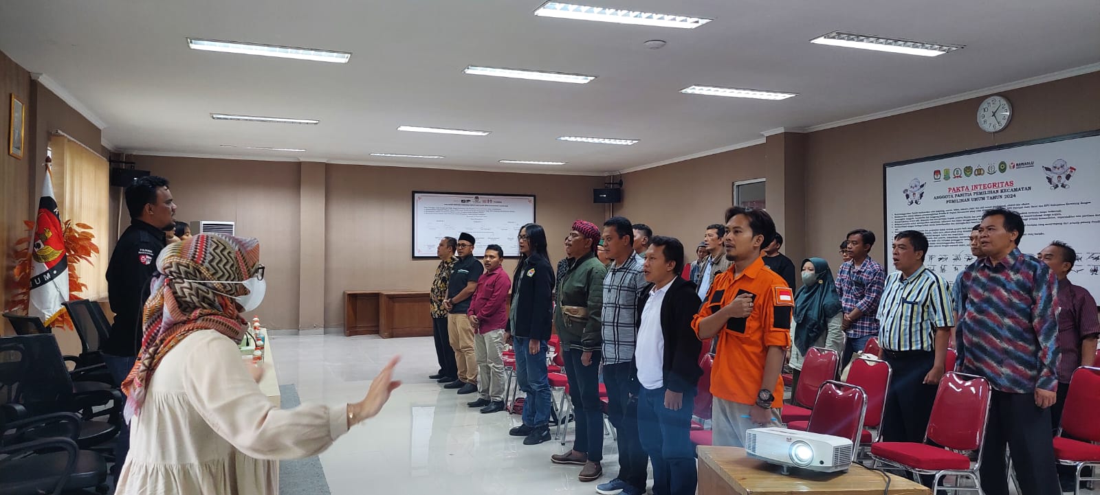 Ketua KPU Karawang Bapak Miftah Farid bersama Bapak Kasum Sanjaya sebagai Anggota KPU Karawang yang di dampingi Bapak Engkus Kusnadi sebagai Anggota Badan Pengawas Pemilu (Bawaslu) Kabupaten Karawang, memberikan arahan mengenai pengawasan dalam tahapan verifikasi faktual yang dilaksanakan oleh Bawaslu Kabupaten Karawang dan Panwascam, serta lembaga independen pemantau sayap putih dan lembaga studi visi nusantara sebagai representasi dari lembaga pemantau Pemilu.