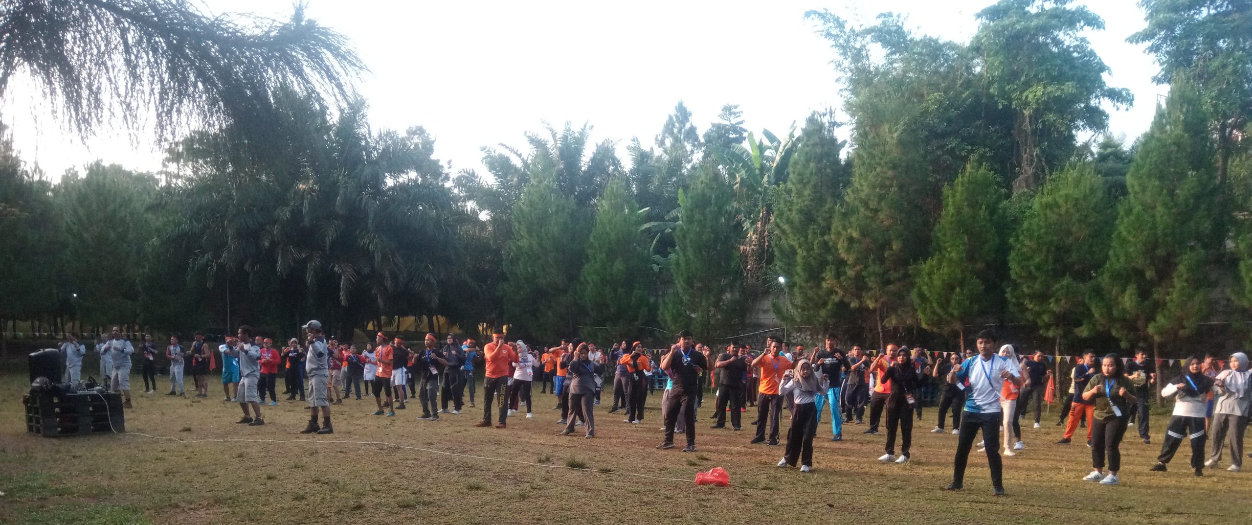 Dihari kedua, sambil menikmati suasana asri dan segarnya udara pagi. Para peserta Jambore Pekerja Muda FSPMI 2023, mengawali kegiatannya dengan senam pagi.