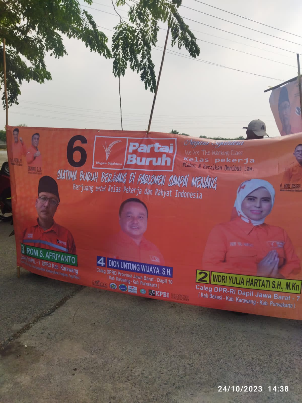 Roni S. Afriyanto selaku Caleg DPRD Kabupaten Karawang dari Partai Buruh dengan Nomor Urut 3 untuk Daerah Pemilihan (Dapil) 1 yang meliputi Karawang Barat, Telukjambe Timur, Telukjambe Barat, Pangkalan dan Tegalwaru bersama Zaenal Arifin selaku Caleg DPRD Kabupaten Karawang dari Partai Buruh di Nomor Urut 10 untuk Daerah Pemilihan (Dapil) 6 yang meliputi Kecamatan Klari, Purwasari, Karawang Timur, Majalaya dan Ciampel termasuk Dion Untung Wijaya, S.H. sebagai Caleg DPRD Provinsi Jawa Barat dari Partai Buruh di Nomor Urut 4 Daerah Pemilihan (Dapil) 10 yang meliputi Kabupaten Karawang dan Kabupaten Purwakarta beserta Indri Yulia Hartati, S.H., M.Kn yang menjadi Caleg DPR RI dari Partai Buruh di nomor urut 2 Daerah Pemilihan (Dapil) Jawa Barat 7 yang meliputi Kabupaten Bekasi, Kabupaten Karawang dan Kabupaten Purwakarta dan beberapa kawan – kawan relawan Roni dan Tim Pemenangan sekaligus penggiat Sasapa yang memberikan Senyum dan Sapa kepada para pekerja yang hendak pulang ke rumah setelah waktu bekerja seharian dengan membagikan Stiker, Leaflet atau Brosur Visi dan Misi Partai Buruh.