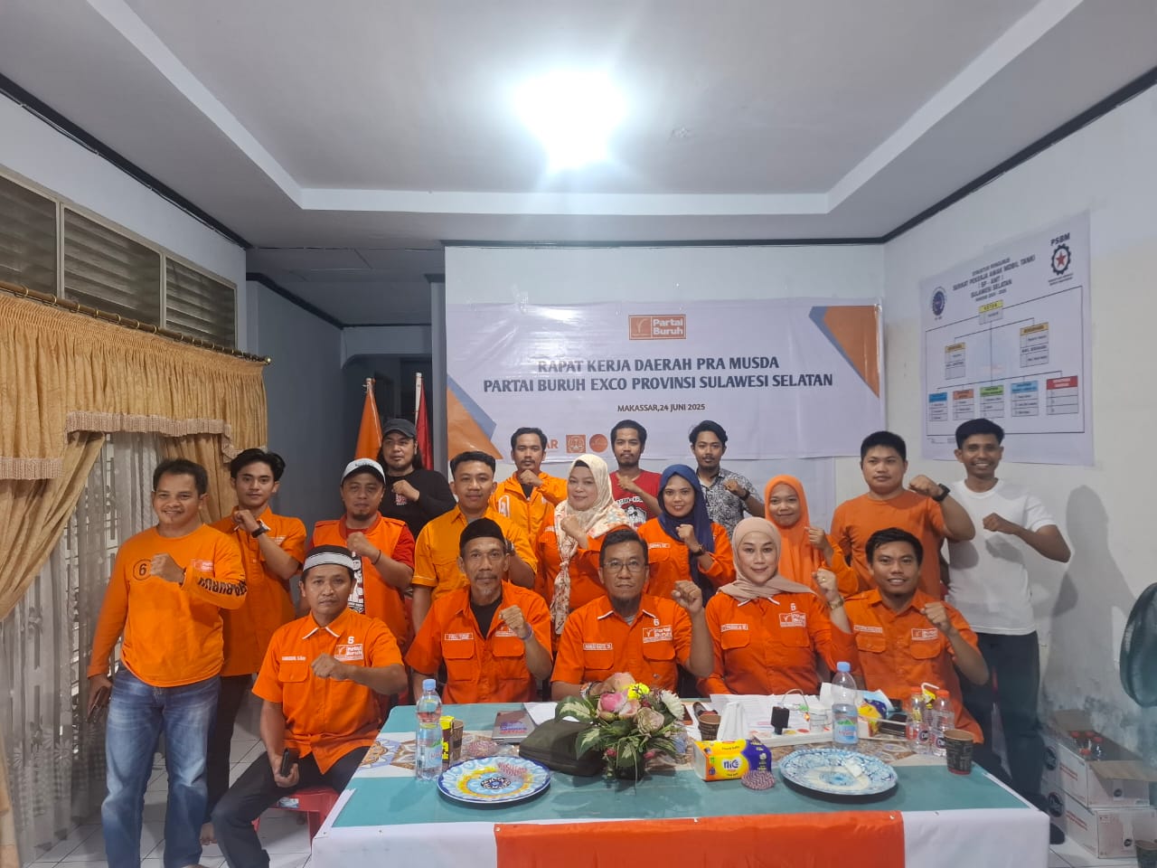 Makassar, KPonline – Bertempat di kantor Partai Buruh Exco Provinsi Sulawesi Selatan, Jl. A.P Pettarani kompleks IDI kota Makassar, Selasa 24/06/2025, Partai Buruh Exco Provinsi Sulawesi Selatan selenggarakan Rapat Kerja Daerah (Rakerda). Dalam kegiatan Rapat Kerja Daerah ini, sebanyak 18 Exco kabupaten/kota dan jajaran pengurus Exco Provinsi Sulawesi Selatan turut hadir. Selain itu, Pilar Partai Buruh seperti Perhimpunan Jurnalis Rakyat (PIJAR) dan Rumah Advokasi Rakyat (RAR) juga turut serta dalam kegiatan ini.