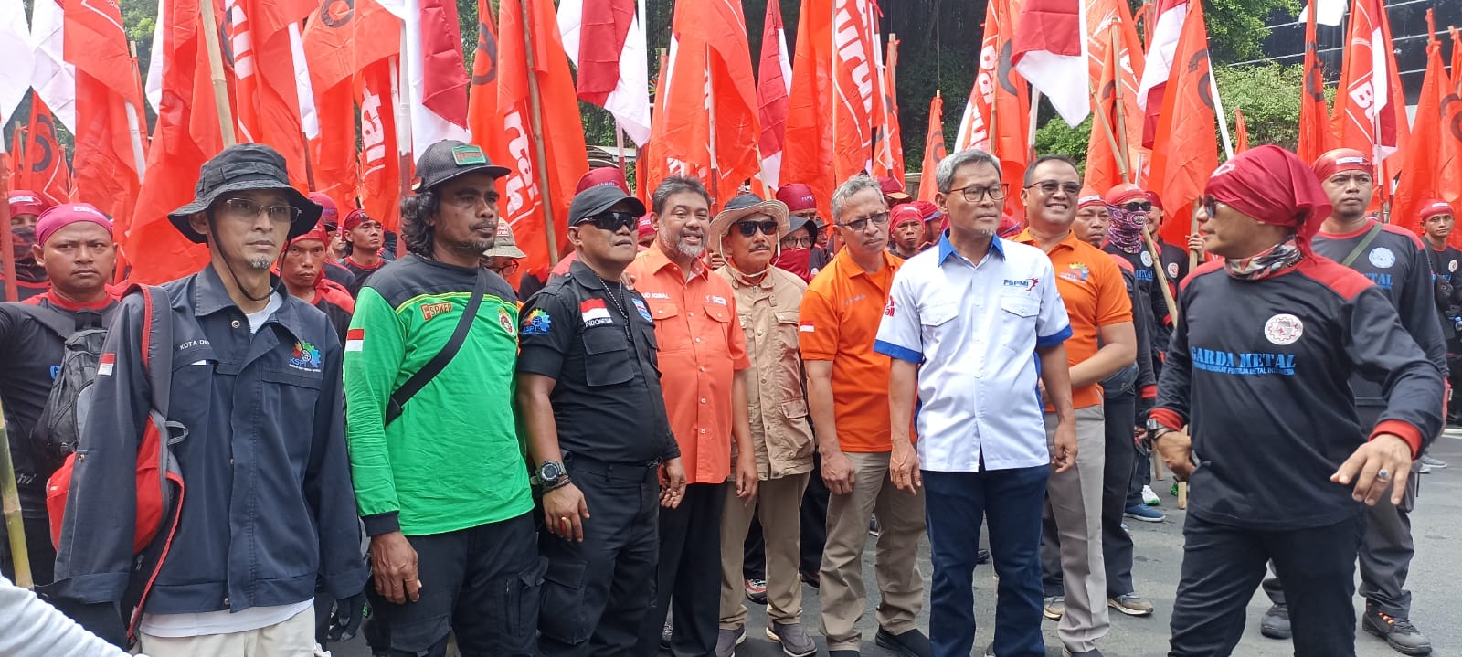 Sampai siang ini terpantau massa aksi dari berbagai konfederasi mulai bergerak menuju area Patung Kuda Jakarta untuk menyuarakan Tuntutan tuntutan Cabut Omnibus Law dan Hostum (Hapus Outsourcing, Tolak Upah Murah).