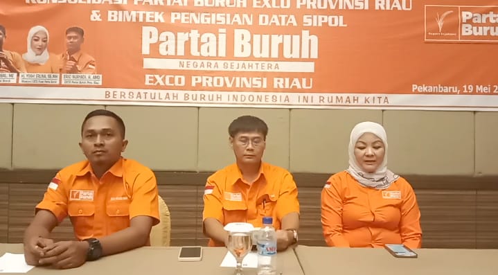 Pekanbaru,KPonline – Bertempat di Hotel Pangeran dijalanl Sudirman N0,373 Pekanbaru Riau, Excekutif Comitte (Exco) Partai Buruh Provinsi Riau lakukan konsolidasi Partai Buruh Exco Provinsi Riau dan Bimtek Pengisian Data Sipol serta penyerahan Surat Keputusan (SK) Exco Partai Buruh 10 Kabupaten Kota se_Provinsi Riau yang terdiri dari,Pelalawan,Pekanbaru,Siak,