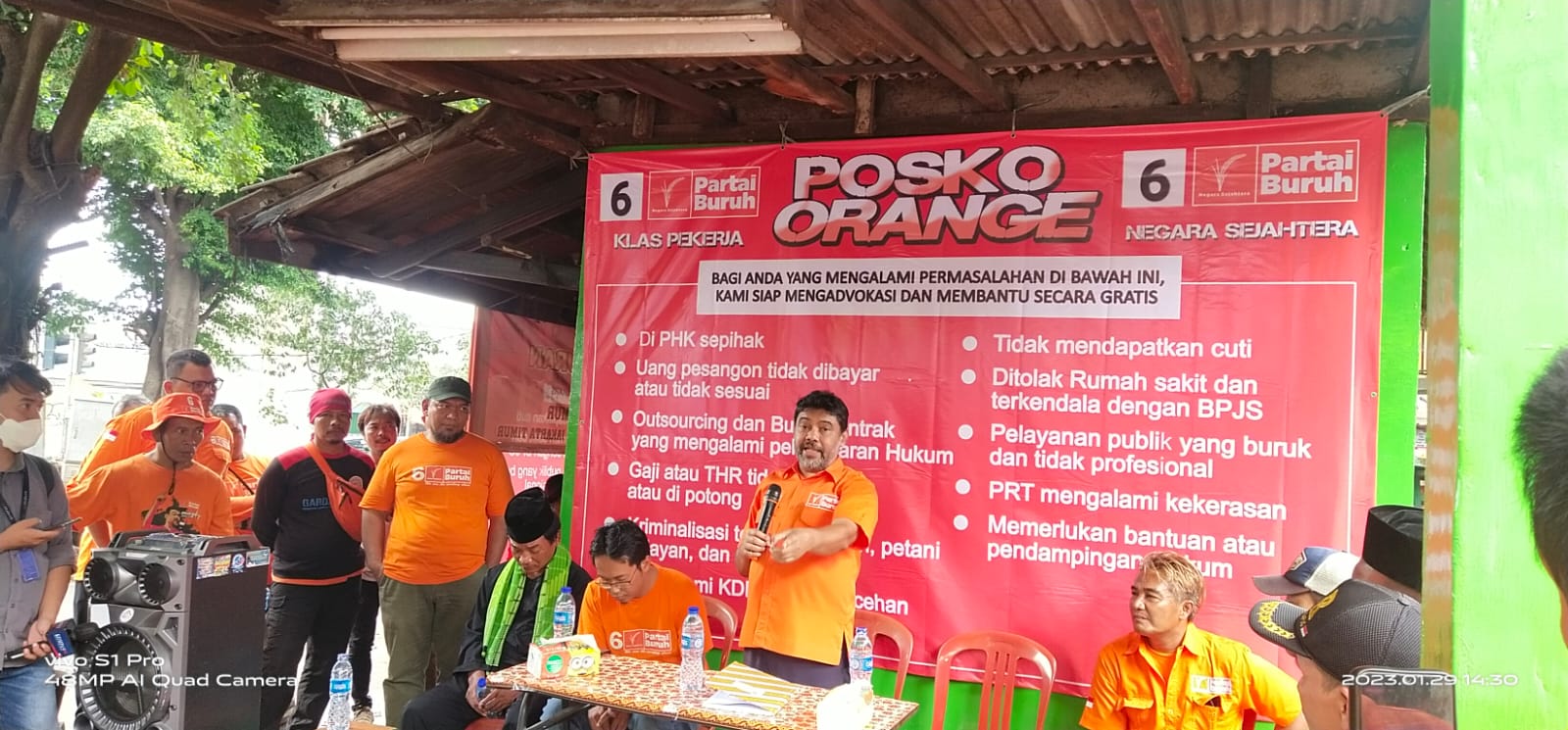 “Posko orange Partai Buruh ini akan di bikin di seluruh Kabupaten dan Kota di seluruh Indonesia dan sebagai pusat pengaduan masyarakat, Posko orange dibuka serentak di 10 provinsi di Indonesia” Ucapnya