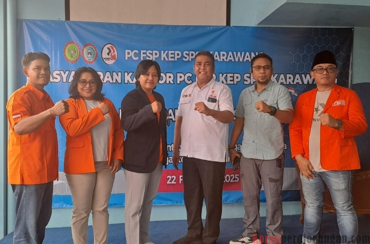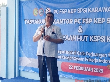 Karawang, KPonline – Bertempat di Jalan Veteran Nomor 1 Desa Karawang Wetan, Kecamatan Karawang Timur, Kabupaten Karawang telah diselenggarakan tasyakuran kantor bersama sekretariat PC FSP KEP SPSI Karawang dengan Exco Partai Buruh Kabupaten Karawang & Peringatan HUT KSPSI ke 52 Tahun. Sab’tu, 22 Februari 2025.