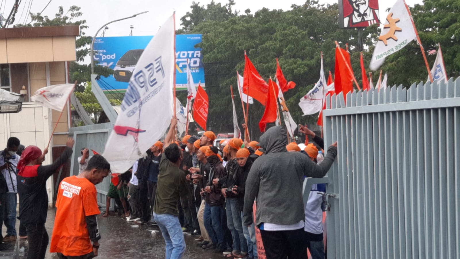 “Kami FSPMI Sulawesi Selatan dan Partai Buruh Sulawesi Selatan menduga bahwa justru pihak kuasa hukum pengusaha yang melakukan penghalang halangan untuk menyelesaikan persoalan hubungan industrial dengan melakukan intimidasi demosi dan aksi tandingan terhadap oengurus serikat oekerja dengan menyewa dan mendatangkan oknum PAM swakarsa dari beberapa organ LSM dan organ lain untuk dibenturkan dengan para oekerja yang menjalankan hak menyampaikan oendapat di muka umum sebagaimana yang diatur dalam UU nomor 9 tahun 1998 tentang kemerdekaan menyampaikan pendapat di muka umum.” ujar Fadli Yusuf.