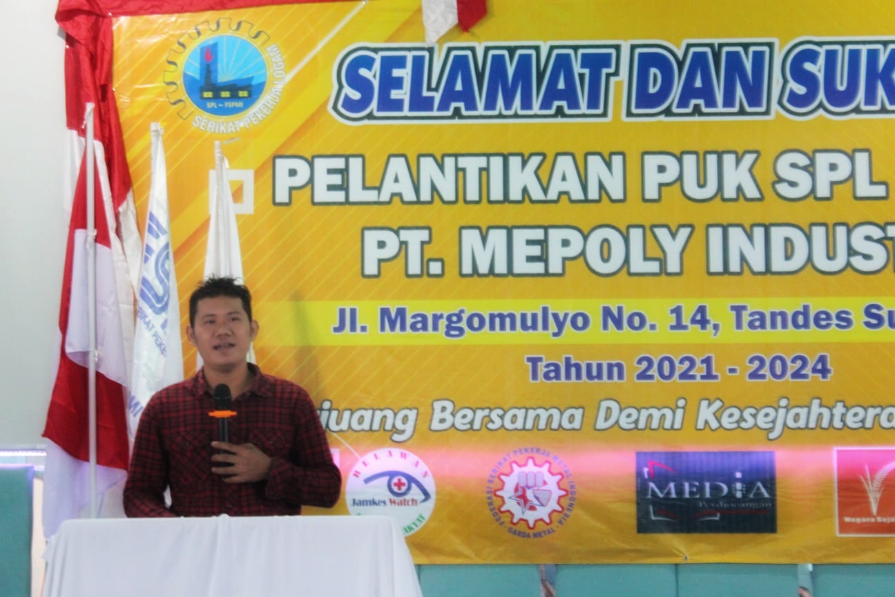 “Selamat dan sukses kepada pengurus PUK SPL FSPMI PT. Mepoly Industry Kota Surabaya yang baru dilantik. Saya mengapresiasi atas semangatnya, terbentuk hampir 1 tahun lalu tetapi baru dilantik hari ini, padahal sudah di ajak demo kemana-mana dan tetap satu komando”, Tuturnya.